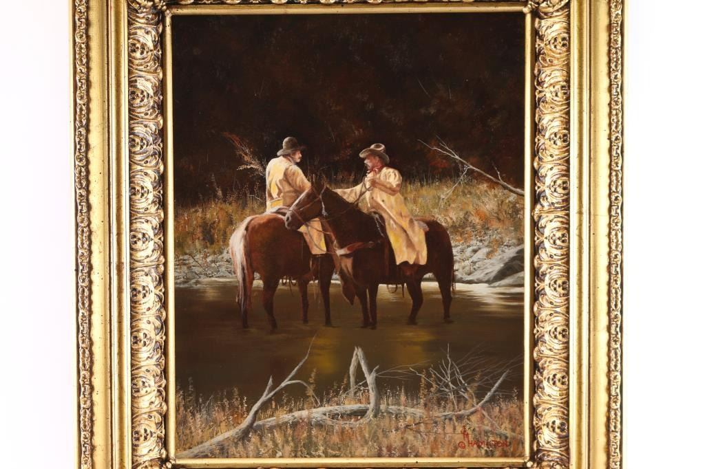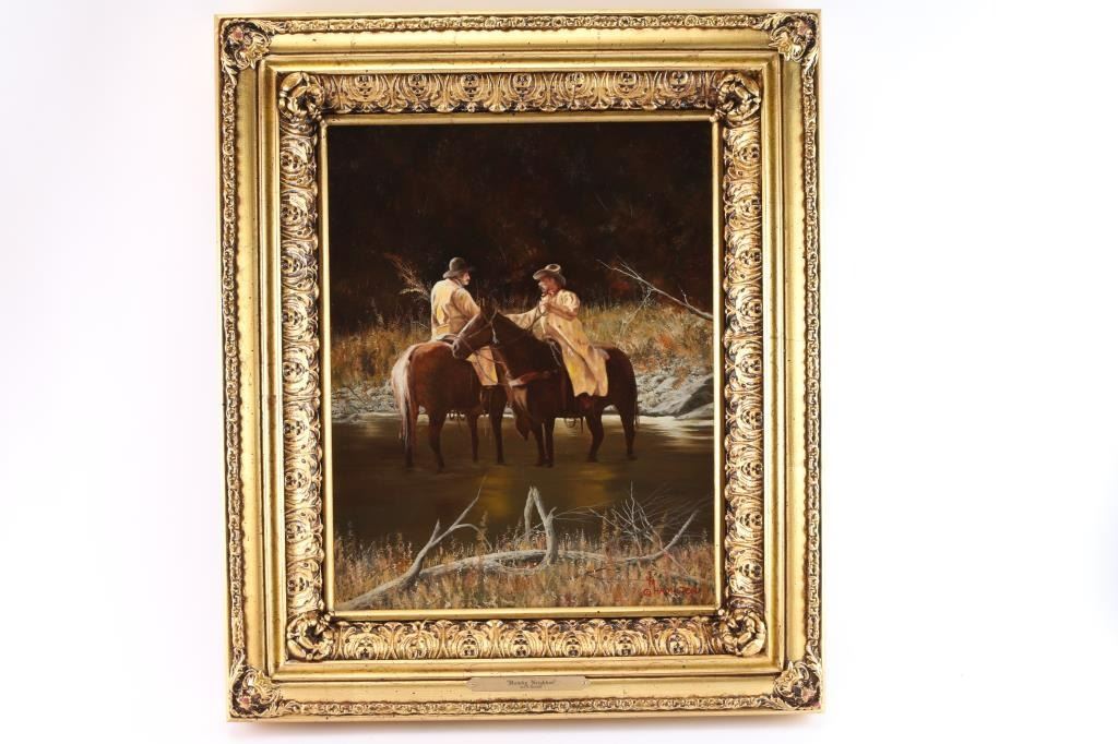 Lot 75 Original Oil on Canvas of Cowboys on Horses.