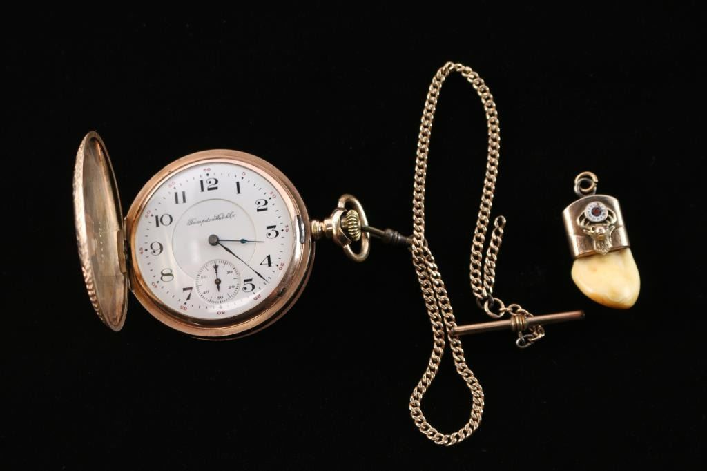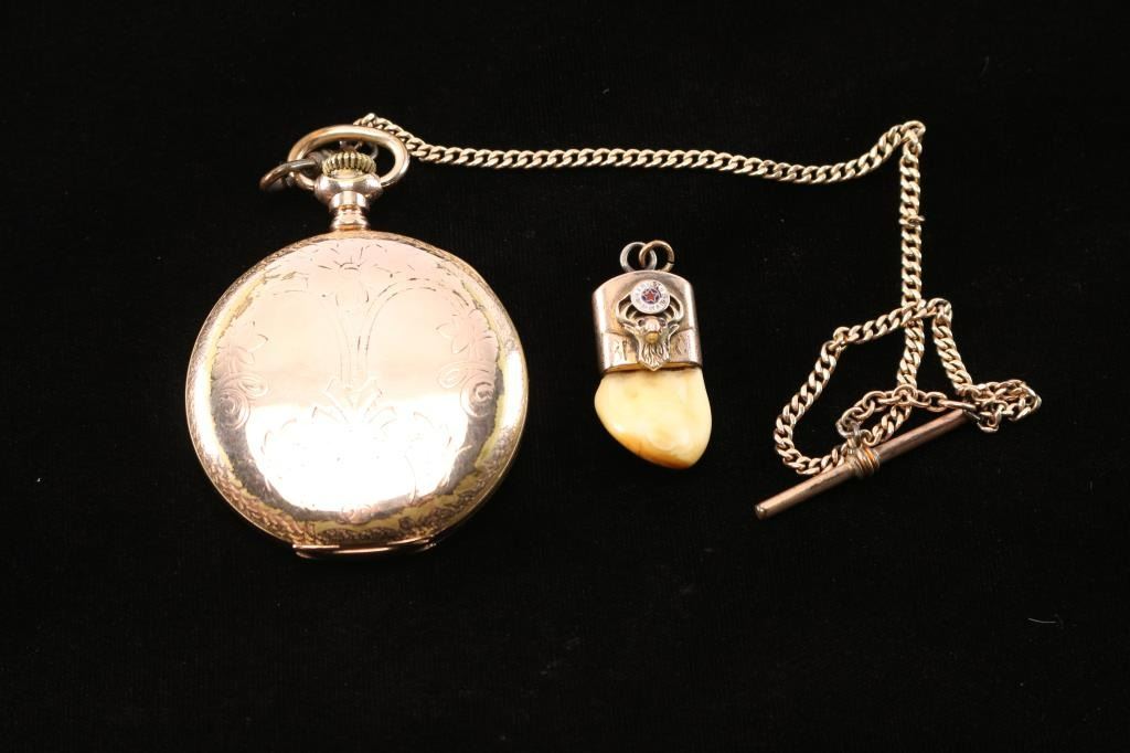 Lot 174 Hampden Pocket Watch & Elk Tooth Fob.