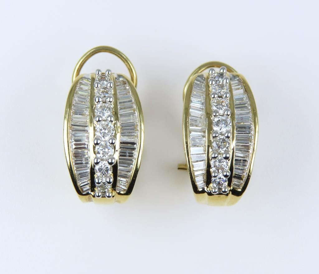 Featuring 78 baguette and round Diamonds weighing approx. 2.00 carats with G-H colors and VS/SI clarity set in a stunning 14 karat yellow gold settings with Omni comfort backs, stamped VIP. Retail $7,000-$9,000.