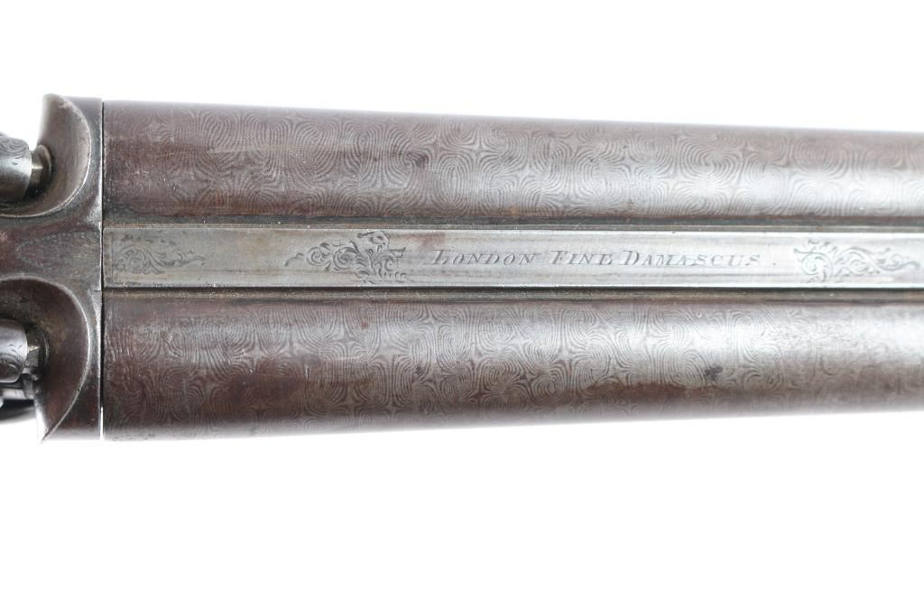 Lot 220a London Fine Damascus Exposed Hammer Shotgun 12 ga