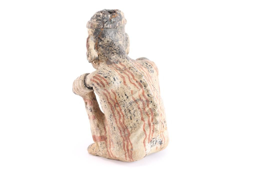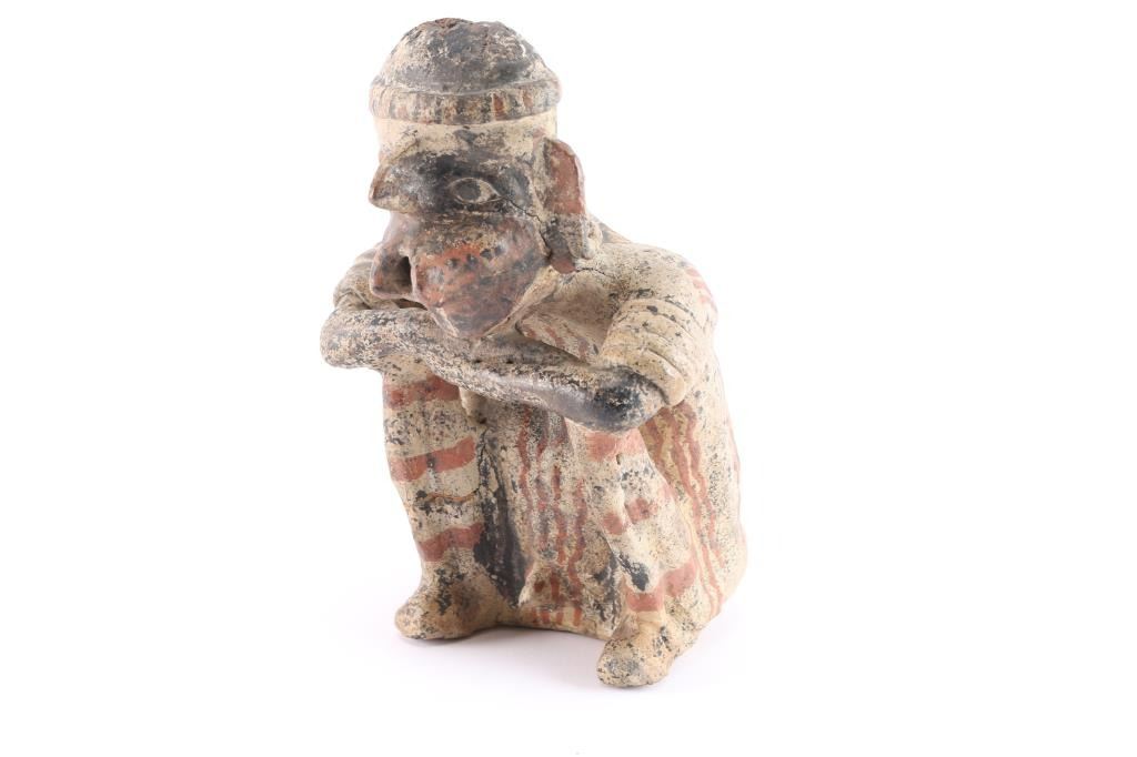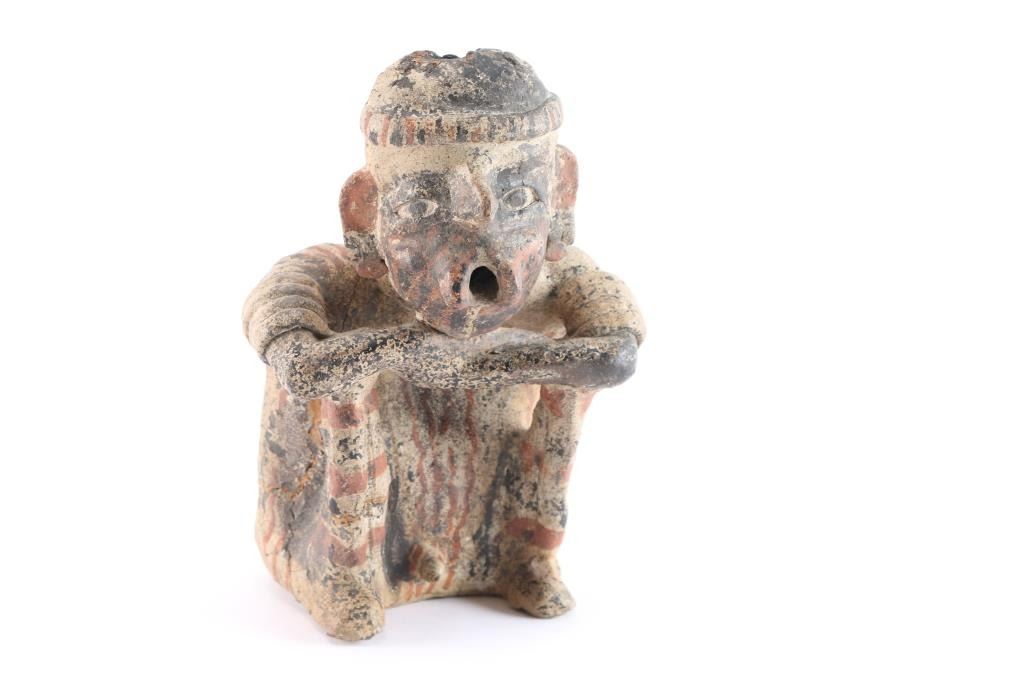 Of Shaman seated and singing. Circa 100B.C. to 200 A.D. Great detail and fine artistry retaining most original paint. Near fine condition. A gem.
