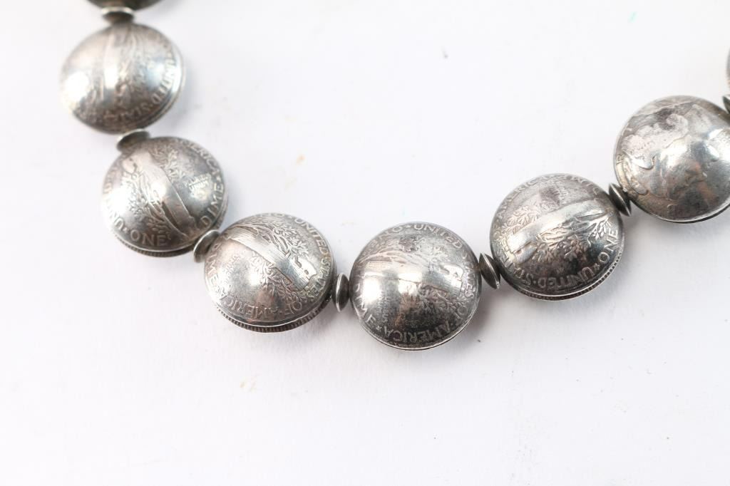 Handmade beaded dime necklace,17" end to end. Mid Length excellent condition.
