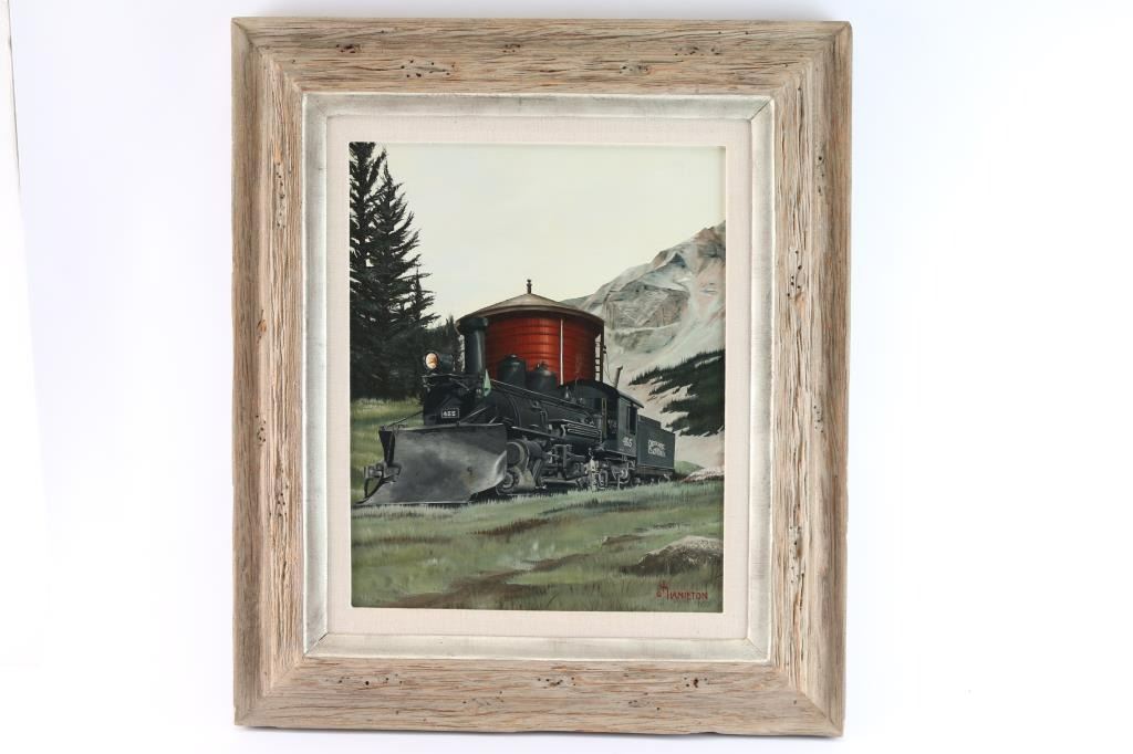 Lot 290 Original Oil on Board of Locomotive.