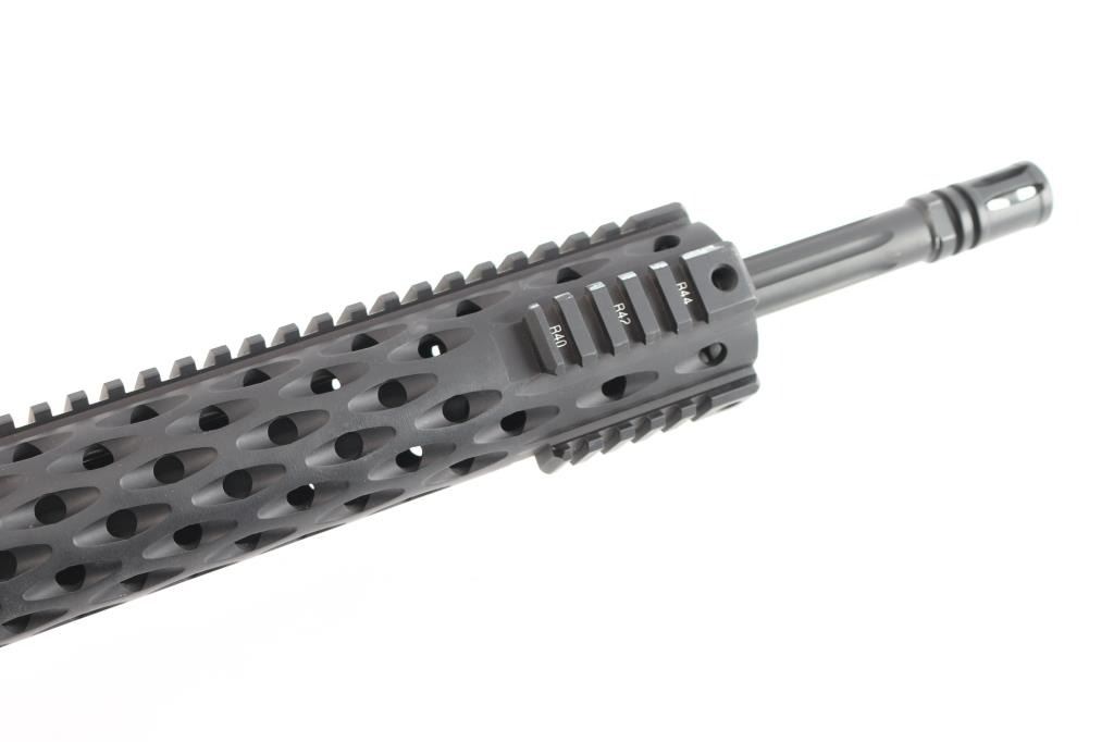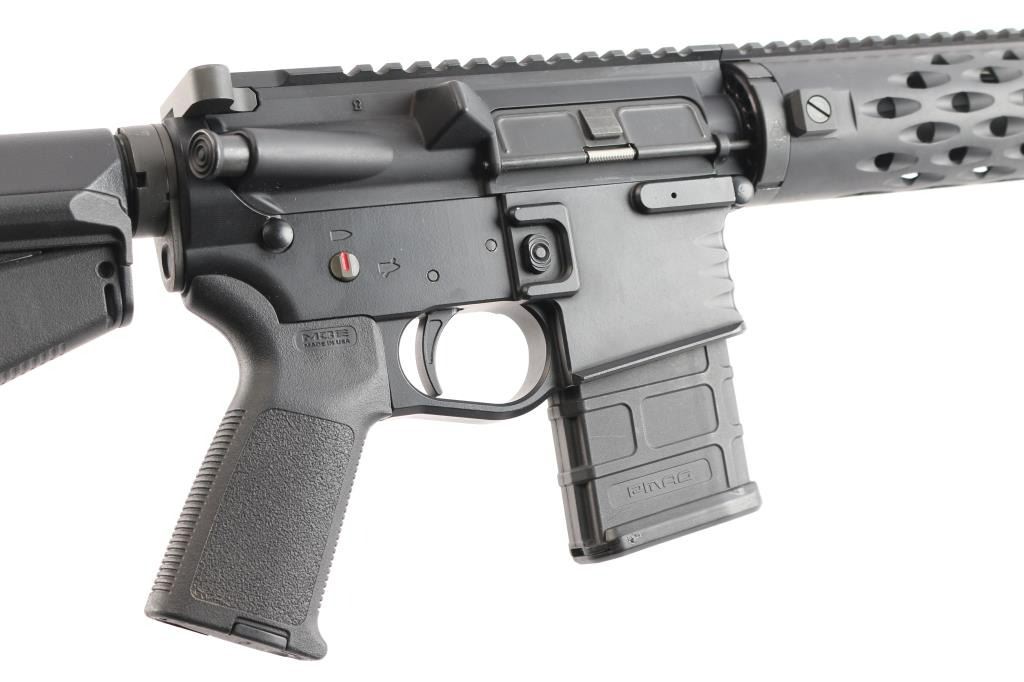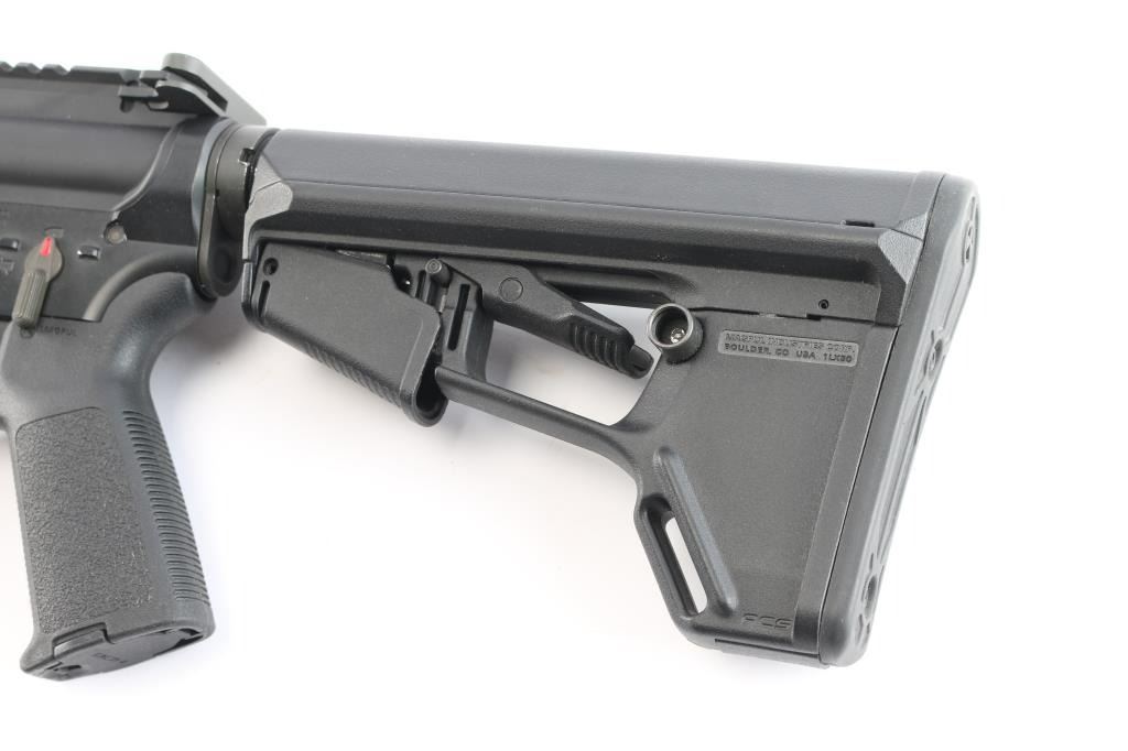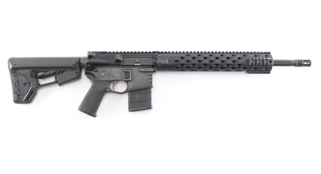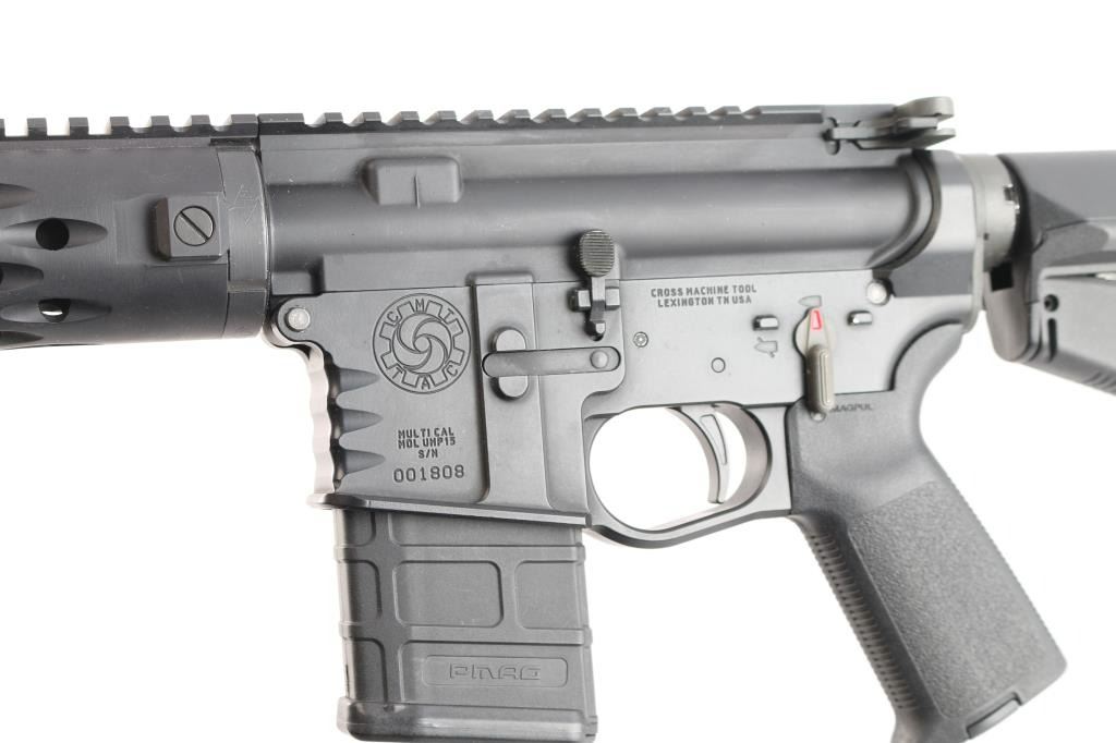This is a custom AR-15 rifle with many quality upgrades built on a Cross Machine Works UMP-15 lower. Features a Wilson Combat 16" stainless steel, fluted barrel with 1:9 twist, Wilson Combat upper with forward assist, shell defector, slotted integral, numbered rail, Colt buffer assembly, JP enterprises buffer spring, LaRue Tactical MBT trigger group, Yankee Hill YHM-9432A handguard, Magpul ACS collapsible buttstock and Magpul MOE grip. one PMAG 10-rd magazine. The bore is excellent/bright, excellent condition overall.