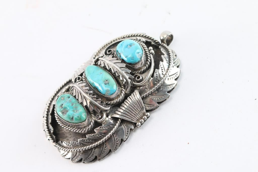Lot 307a Navajo Turquoise 3 Stone Pendant