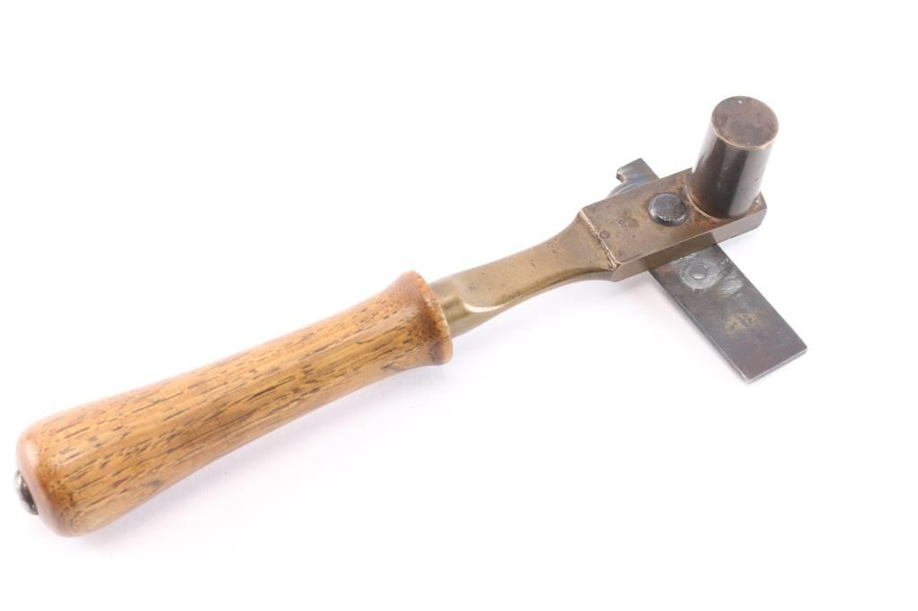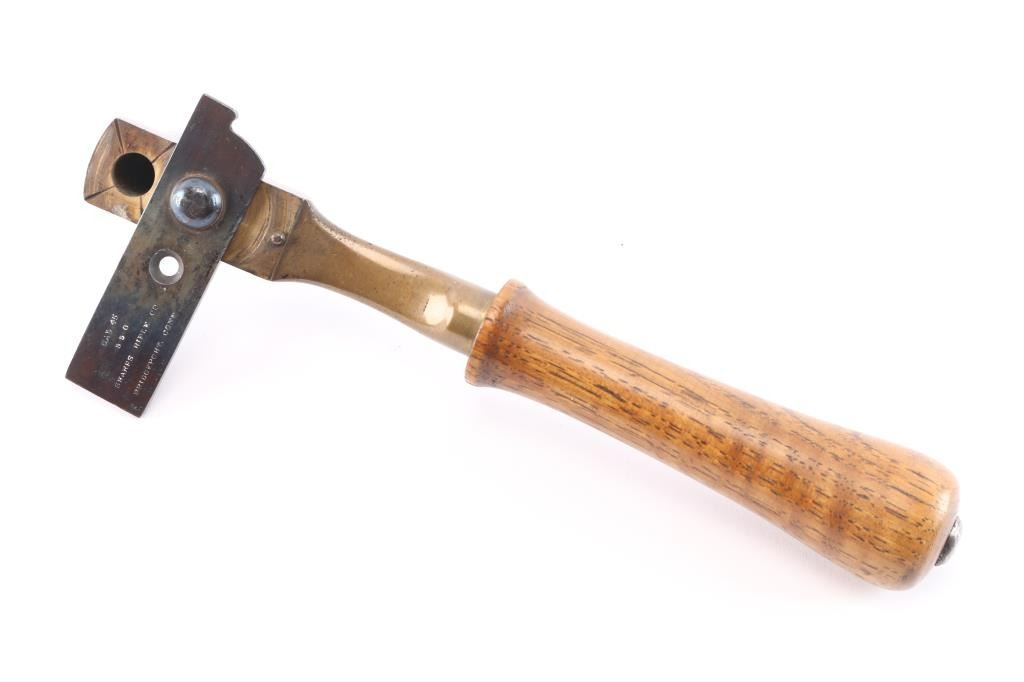 Excellent condition. Marked Bridgeport Conn. Wood handled mold with blued steel. Sprue cutter. Near fine condition. Very slight use. A 9+ on 1-10 condition scale. "Bob" Butterfield Collection.