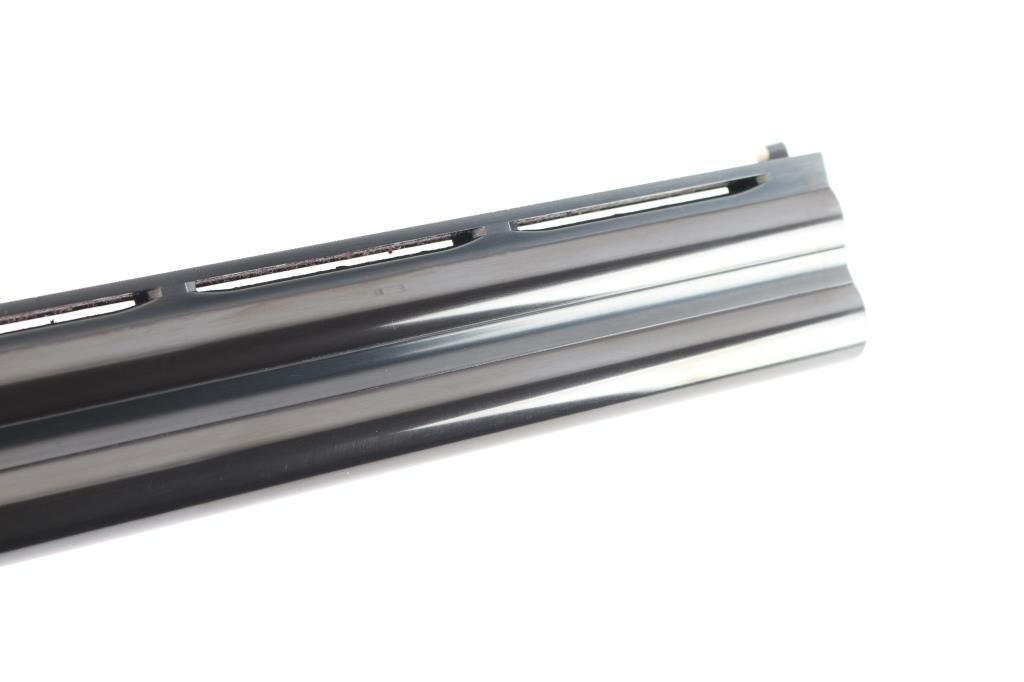 High quality Japanese O/U "High Special Trap" 12 GA shogun. Features 30" barrels with fixed Full / Imp Cyl chokes, Broadway style flat trap rib and solid-side ribs. High polish blued barrels. Nickel finished action featuring fine floral/scroll engraving, high polish blue triggerguard. top lever and safely. Factory Monte Carlo trap stock with spacer to 13 1/4" LOP, contrasting wood pistol grip with spacer and trap beavertail forearm, both with white diamond inserts. Double triggers, tang safety, barrel selector, auto extractors, gold toned trigger. Bores are excellent/bright, blue is about 97% with a few very minor scratches, wood is overall excellent with a few minor scratches/dings and the receiver is excellent. Mechanically in excellent condition. Matching serial numbers. Consigner purchased this shotgun in Japan.