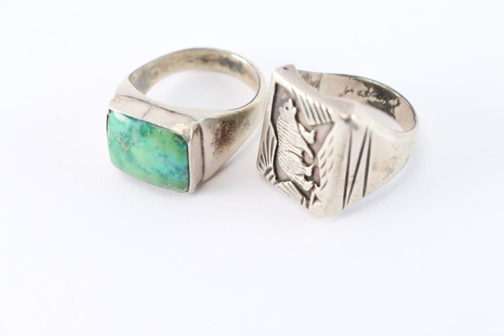 Lot 473 Two Navajo Sterling Silver Men's Rings.