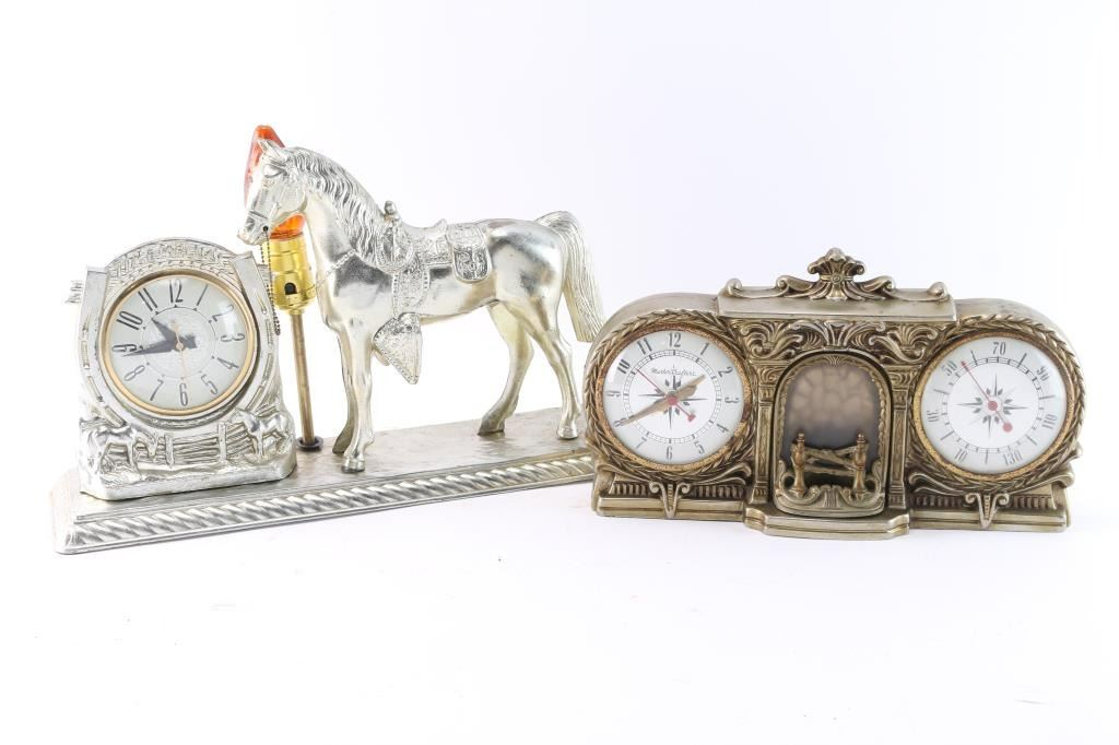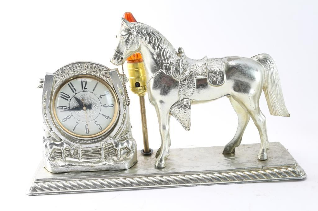 (1) Horse clock and Light with nickeled finish