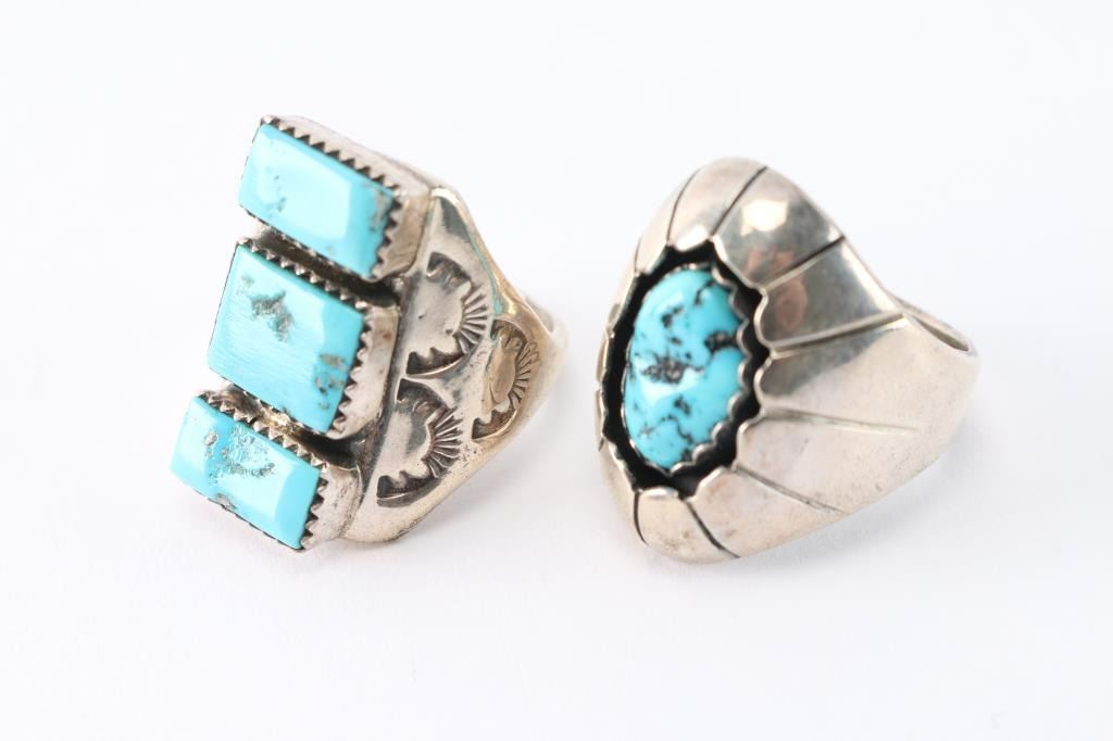 Lot 537 Lot of Two Men's Turquoise Rings.
