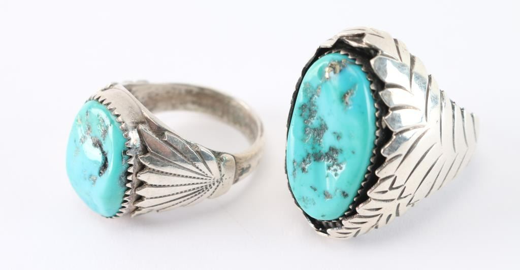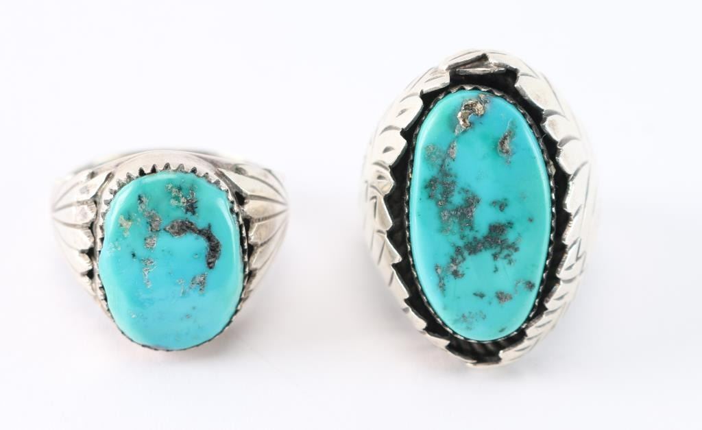Lot 544 Lot of 2 Men's Turquoise & Sterling Rings.
