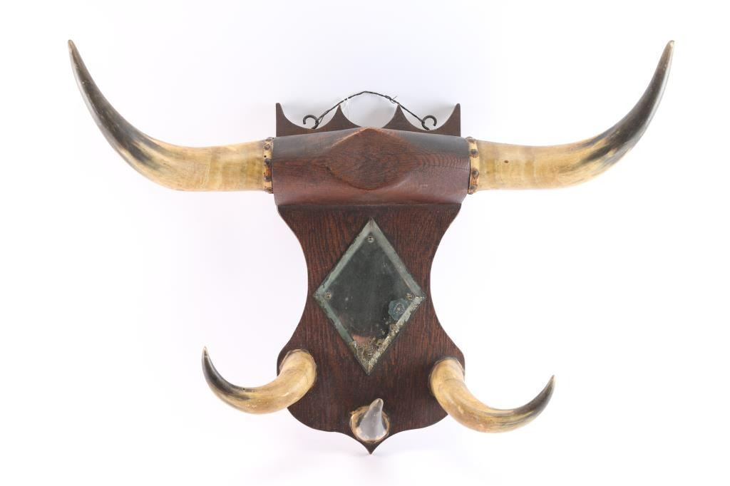 Lot 569 Horn & Carved Wood Hat Rack.