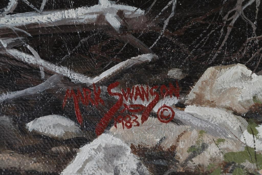 By Mark Swanson, depicting landscape. Image size 17.5" X 20". Signed lower left corner.