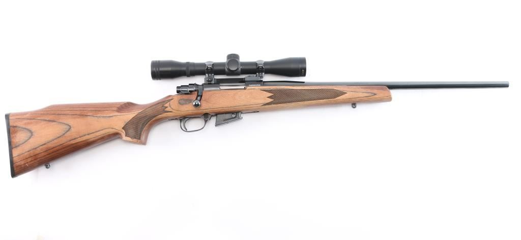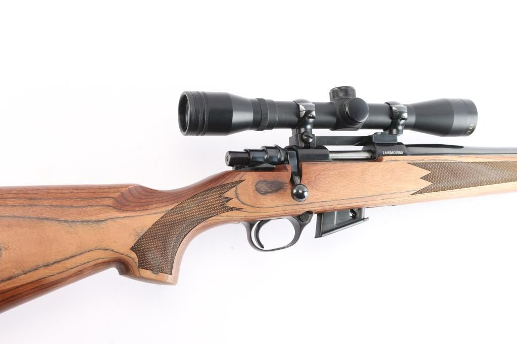 Sn: #ZA700601385. Serbian bolt action rifle imported by USSG, Rockledge FL, under the Remington brand. Features 22" tapered barrel, blued finish, laminated wood sporter stock, checkering at wrist & forend, checkered black polymer butt plate, sling studs, no sights, mounts a Buck Ridge Sport 4 X 32 Scope with a duplex fine cross hair reticle. Bore is pristine and scope is clear. Retains 95% finish with some handling marks. Stock is excellent with a couple of dings. Comes with a detachable metal magazine. NRA Condition is near Excellent . Modern Firearm