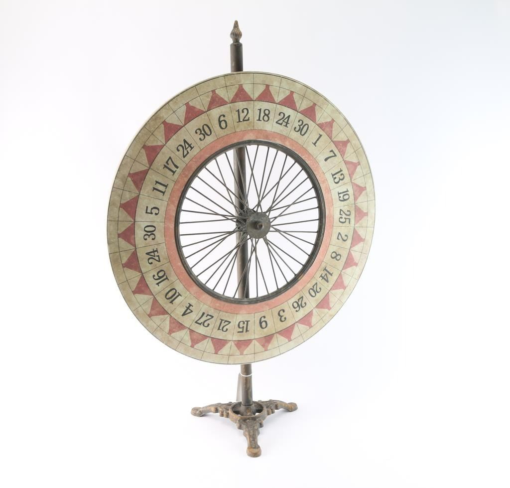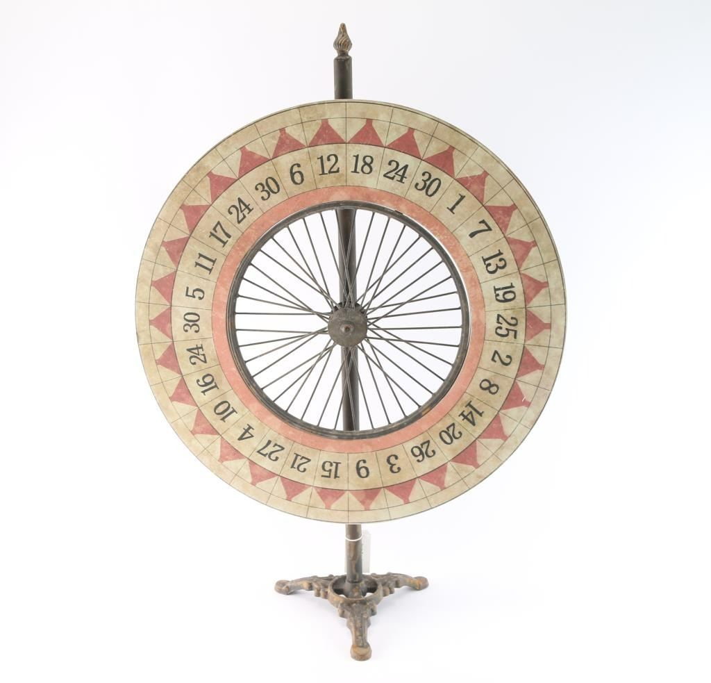 On metal stand. Measures 35 1/2" tall by 23 1/2" wide.