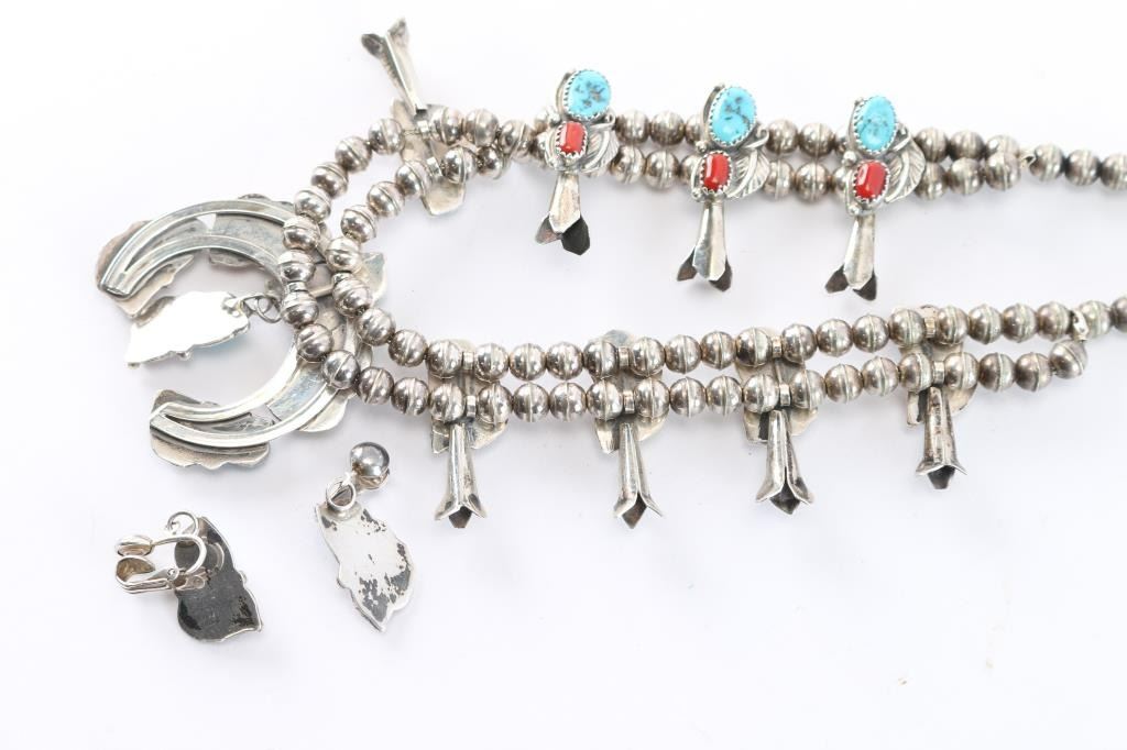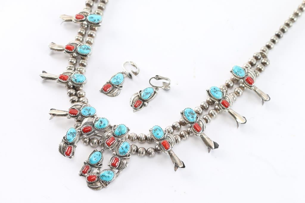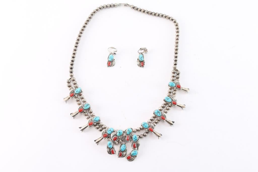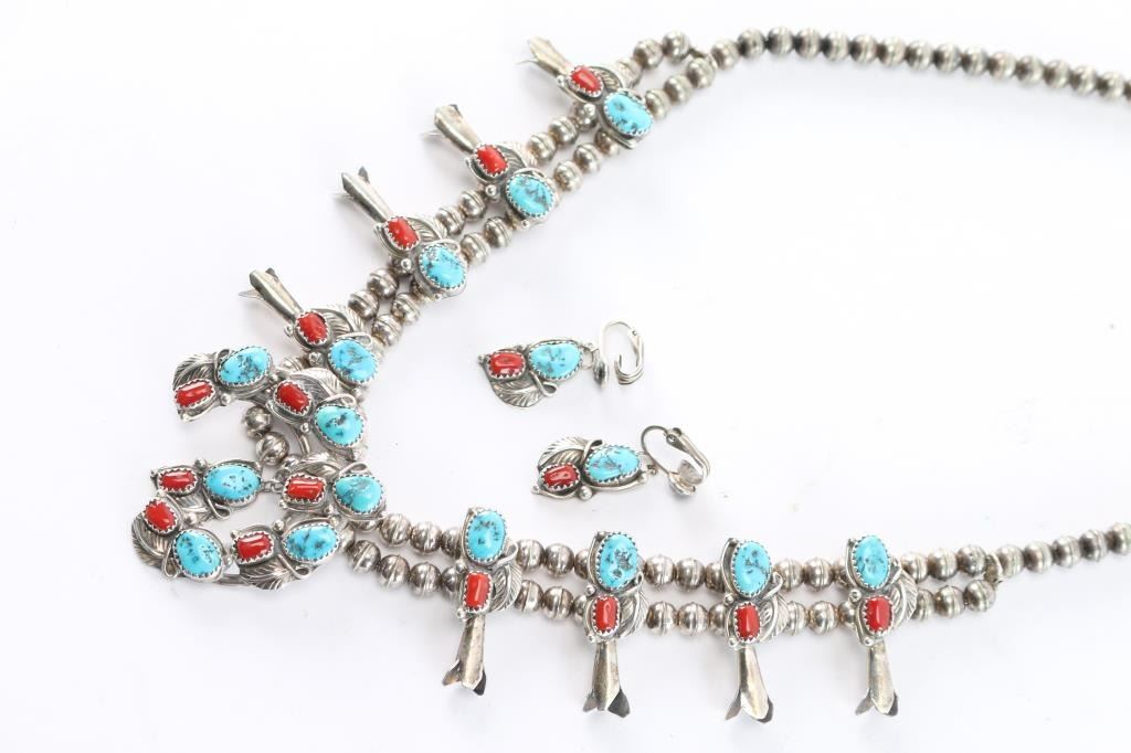 Lot 758 Turquoise & Coral Squash Blossom.