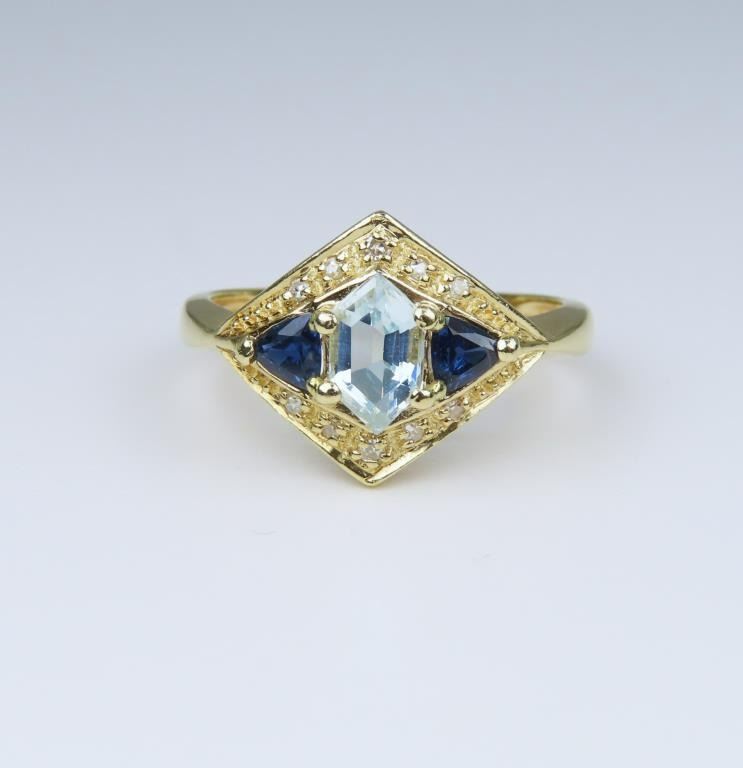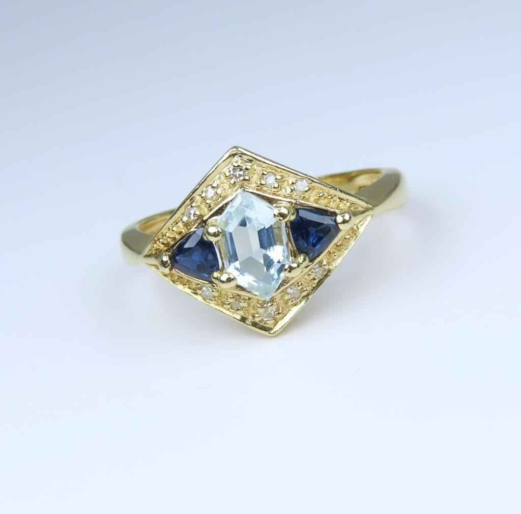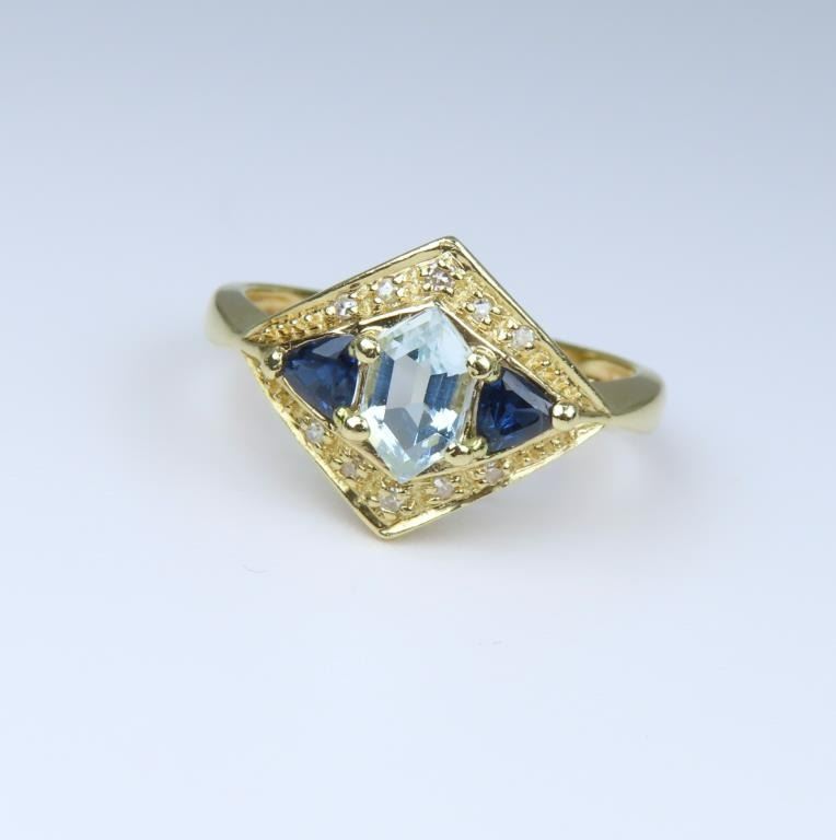 Lot 857a Aquamarine, Blue Sapphire & Diamond Ring.