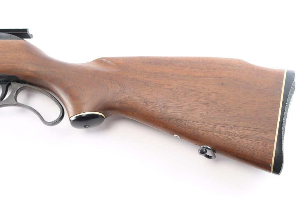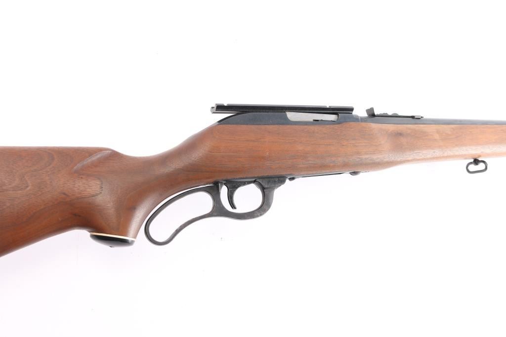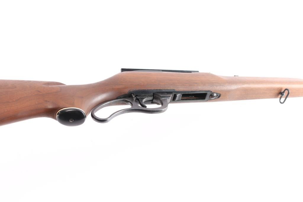 The 'Levermatic'. Early production magazine fed lever action repeating carbine chambered in .30 Cal carbine, steel receiver, circa 1963-69. Features a blued finish, 20" Micro-Groove barrel, ramped, hooded blade/bead front sight with bead, adjustable sporting rear sight, 6" scope base installed on receiver, missing magazine, serrated trigger, short throw action, polished bolt, and one piece Walnut pistol grip shoulder stock with factory buttplate, sling swivels, & grip cap, 2nd hole drilled for sling stud. Rifle exhibits about 95% of it's original blue finish with some minor pitting on the lever and some scattered light patina on the barrel . Action is smooth, bore is very good/bright and wood stock is excellent. Condition NRA Good.. C&R Firearm.