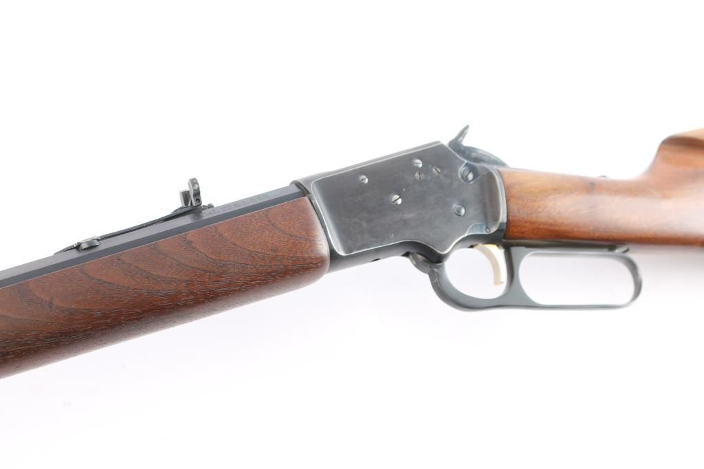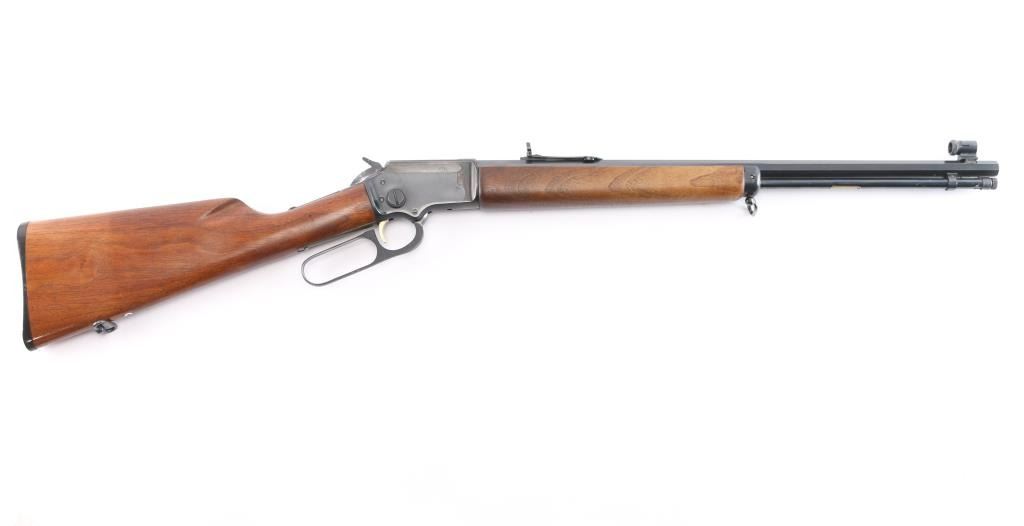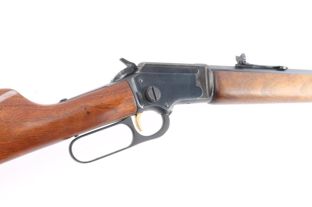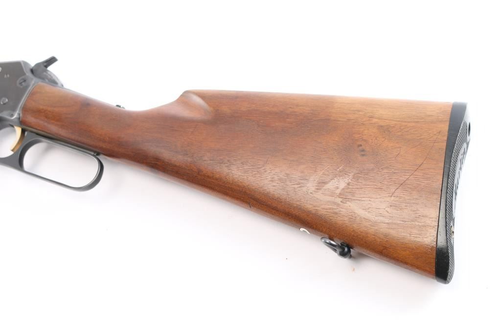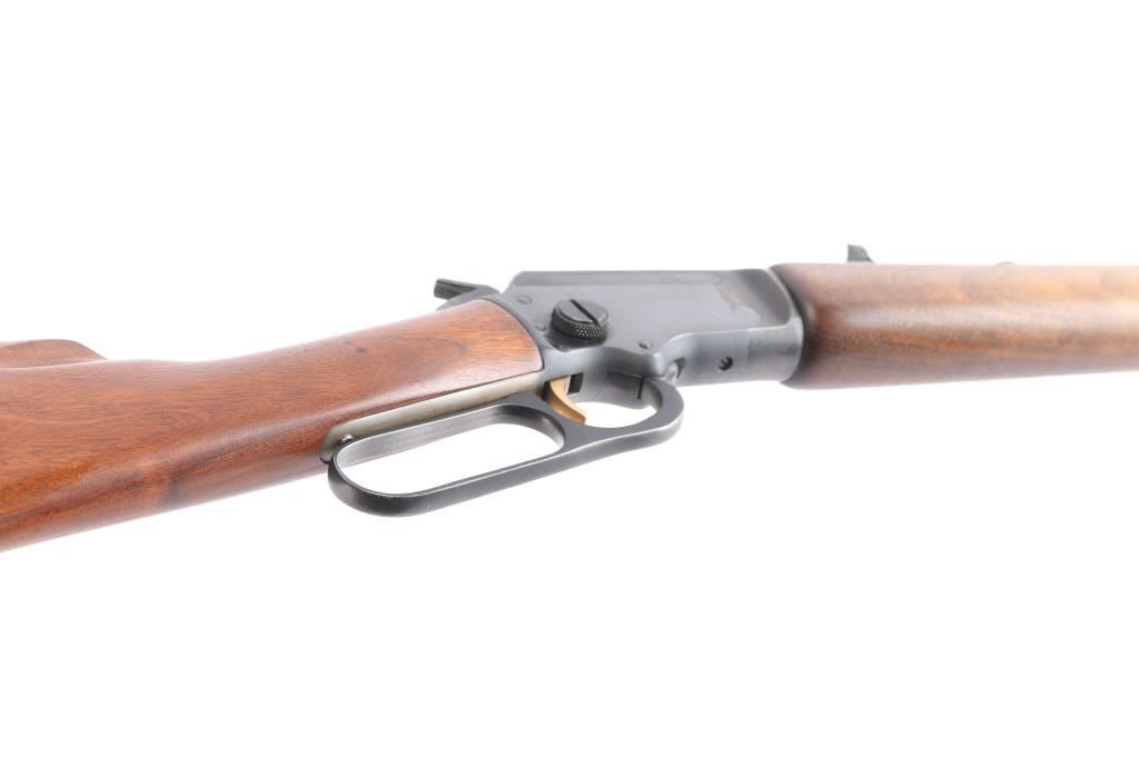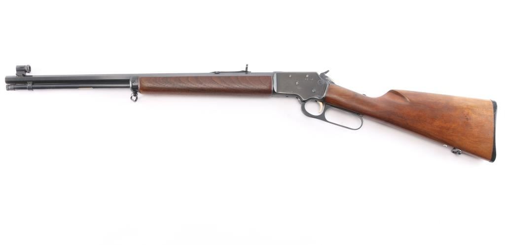 SN: 21261042. Lever-Action. Take-Down. 20" octagon barrel with globe/insery front and semi-buckhorn, adjustable rear sights. Full tube magazine. capacity 21-short, 16 long, and 15 long rifle. Smooth walnut stock and forearm. Blued fore cap and black plastic factory buttplate. Barrel stamped "Marlin 39M Article II, The Marlin firearms Co., North Haven, Conn. U.S.A." No NRA medallion, no evidence it ever had one. Wood is very good with minor scratches, bore is excellent/bright, action is smooth/tight. Blued finish is about 85% with minor scratches, handling wear mostly on the receiver.