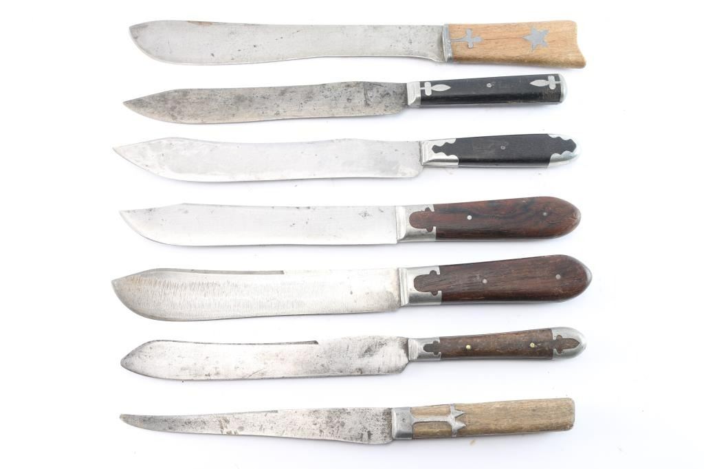 Lot 1071 Lot of 7 Thin Steel Butcher Type Knives.