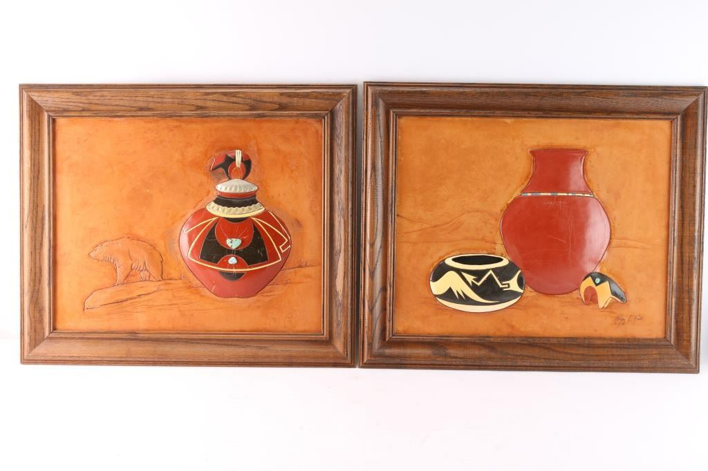 Lot 1078 Lot of 2 Framed Leather Art Pieces.