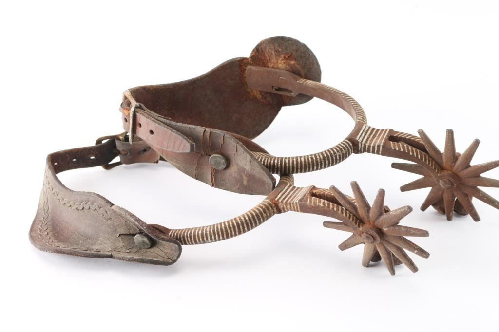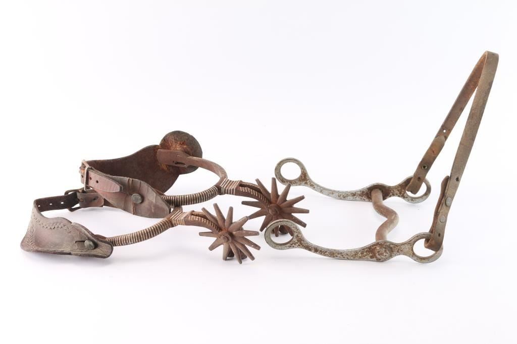 Lot 1418 Antique Large Rowel Mexican Spurs & Bit.