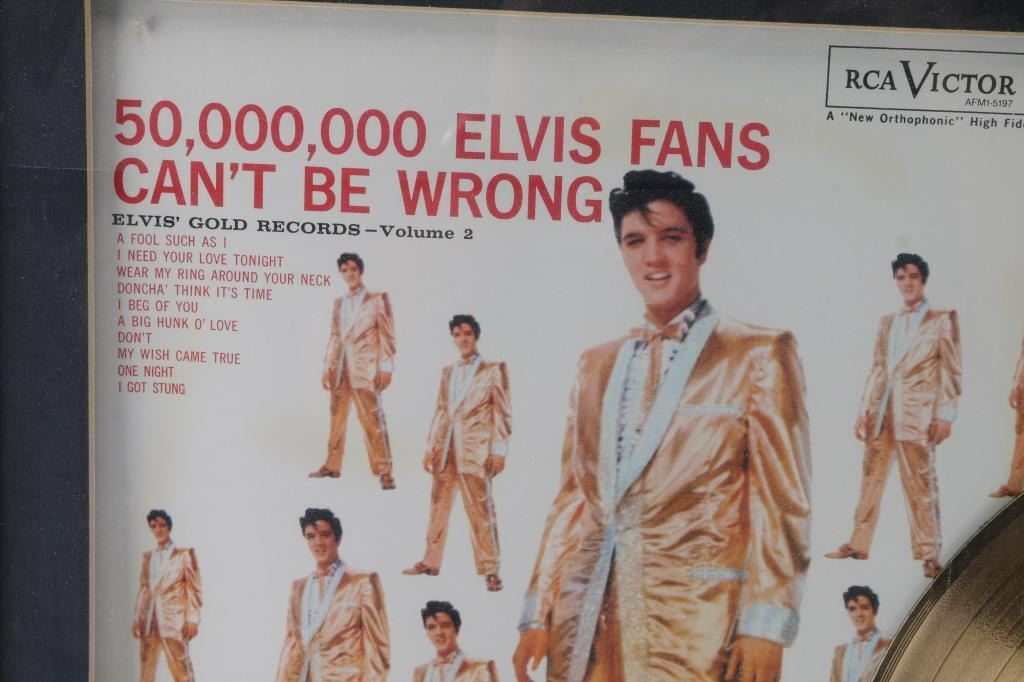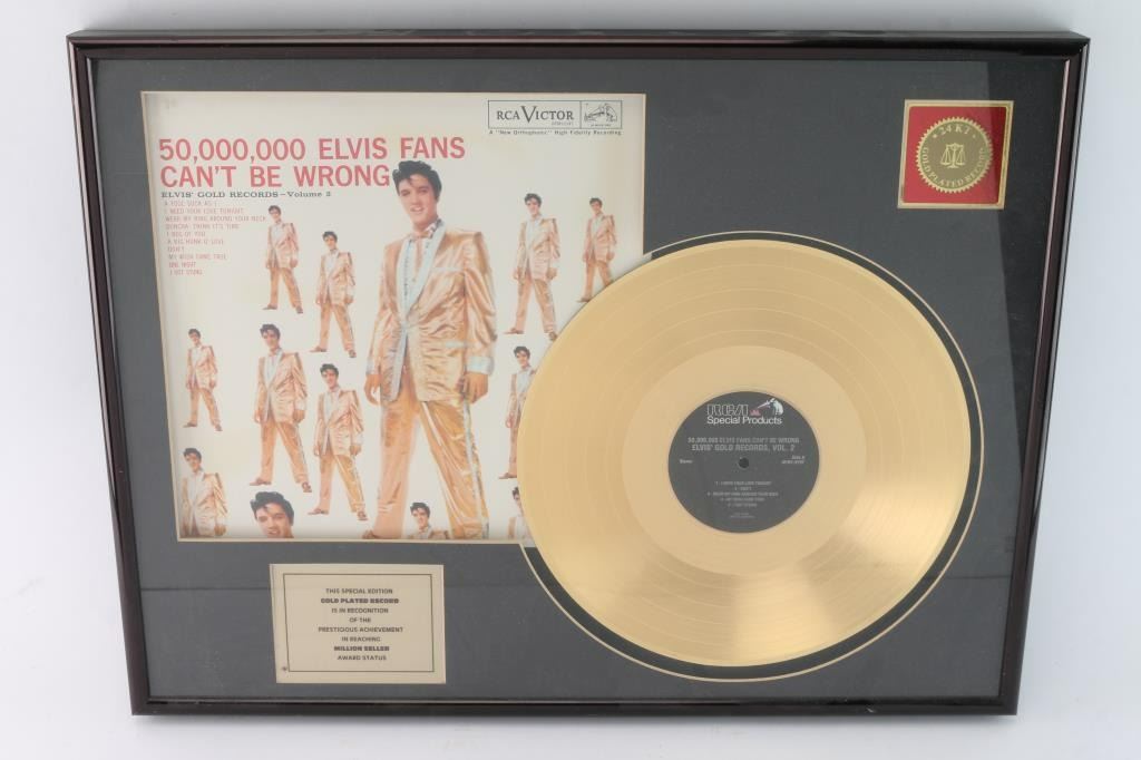 Special Edition gold-plated record "50,000,000 Elvis Fans Can't Be Wrong". Elvis Presley Enterprises.