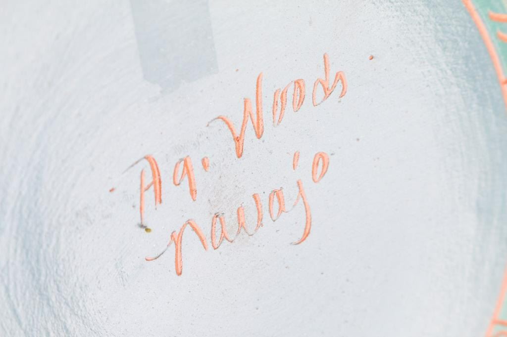 (1) Navajo Incised Carved Pot with kokopelli design AG Woods 3.5"TX16W