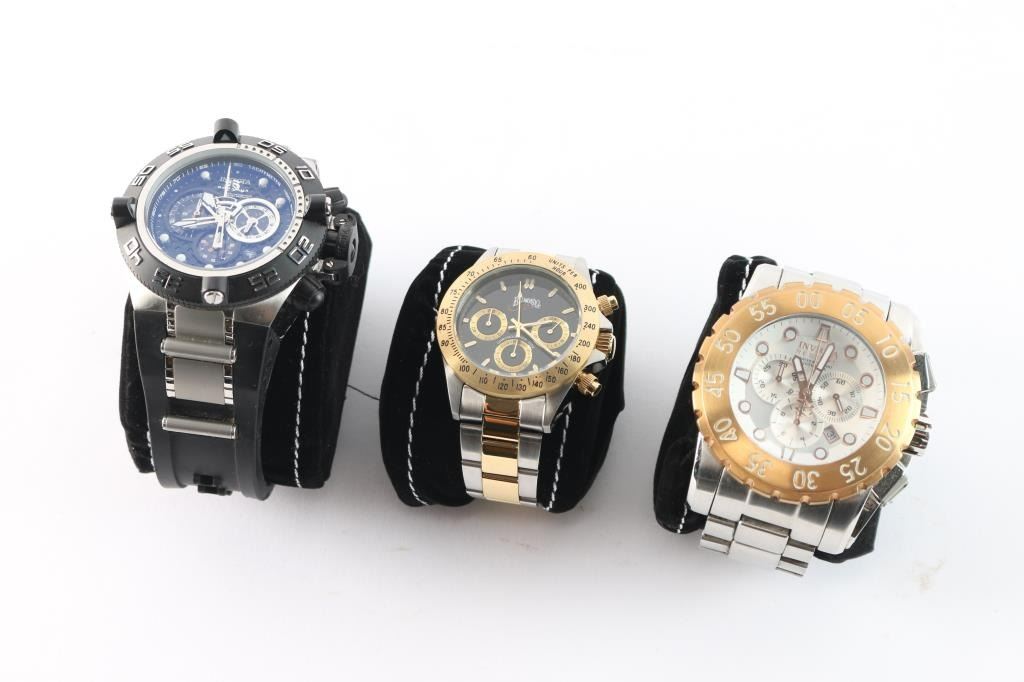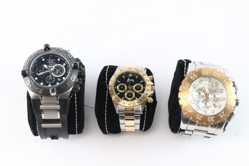 Includes: (1) Technos Belmondo Chronograph, (1) Invicta Reserve 1958, Invicta Subaqua Noma IV