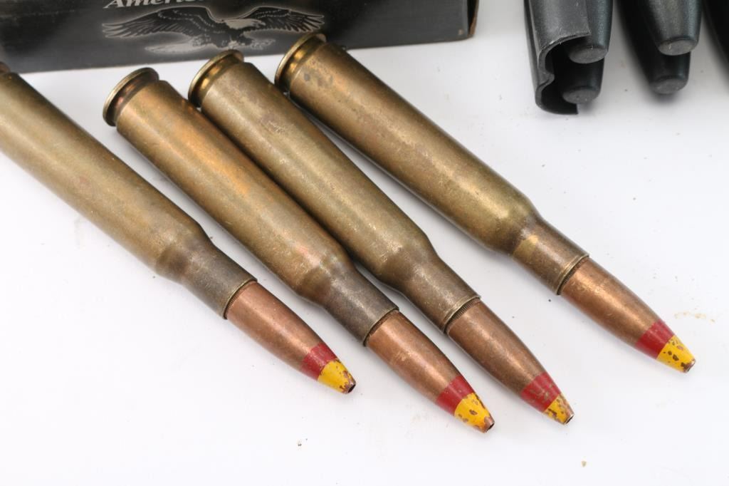 Approx. 140rds: (40rds) Barrett 661g FMJ, (30rds) Summit 649g Ball, (40rds) Argentina Ball, (20rds) AP black tip, (10rds) American Eagle blue tip, (4rds) red/yellow tip.