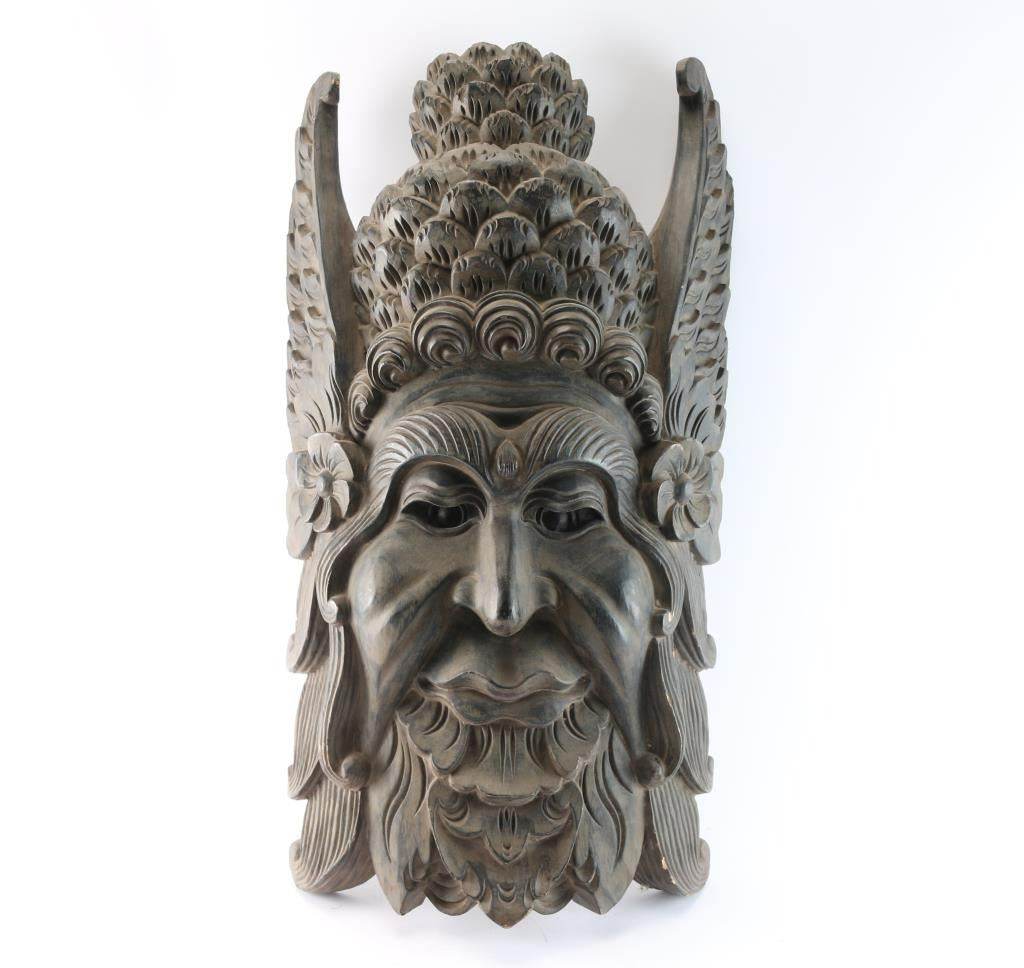 Large wooden mask depicting male figure measures 31"x17".