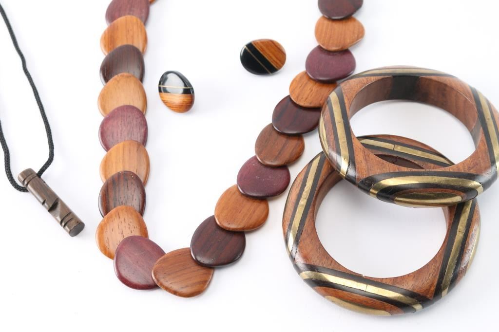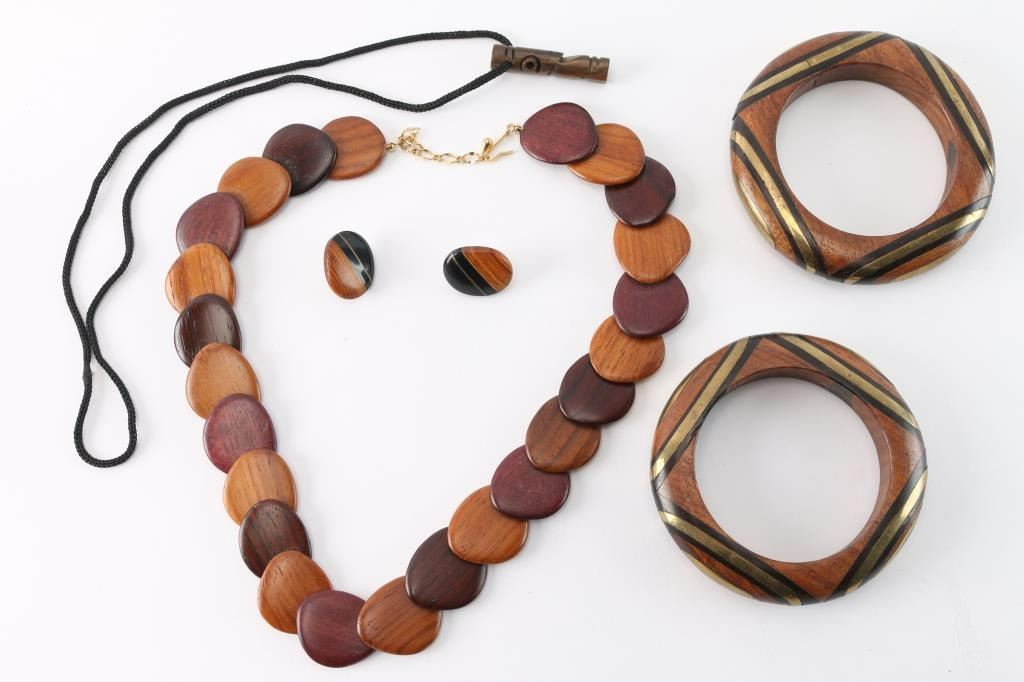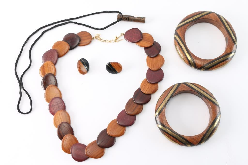 Lot 1674 Vintage 60's Carved Wood Jewelry.