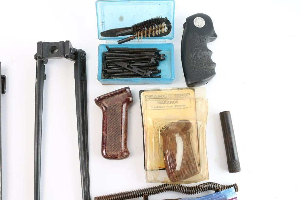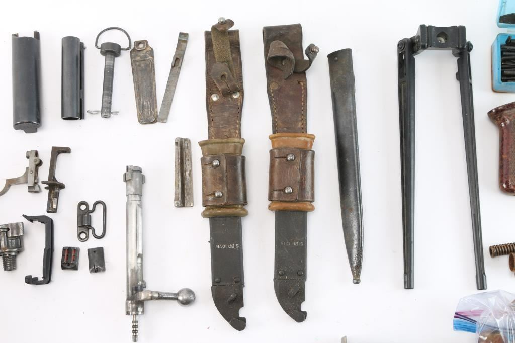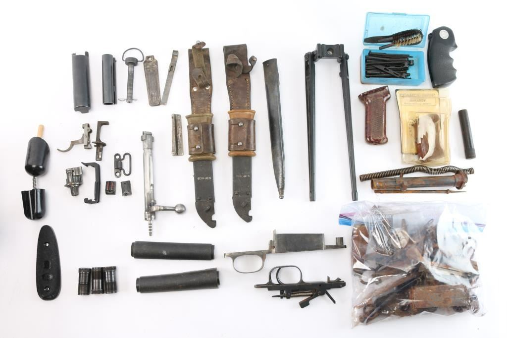 Includes: SKS trigger assembly, receiver cover and hand guard; Mauser bolt body, firing pin; AK-47 bayonet scabbards and more.