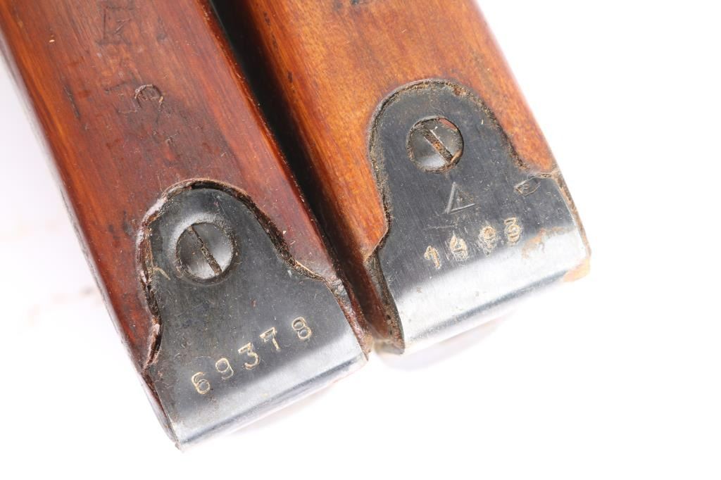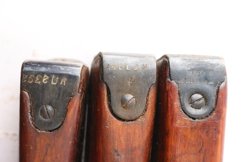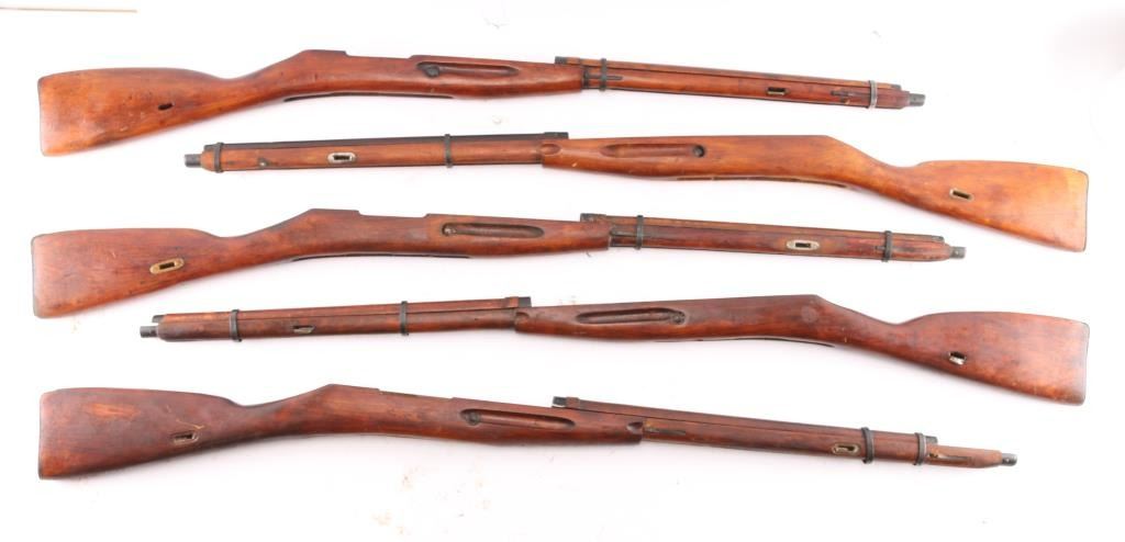 5 complete stocks w/handguards, including metal parts, ie. barrel bands, recoil bolt and nut, serialized butt plate and more. All in good condition.