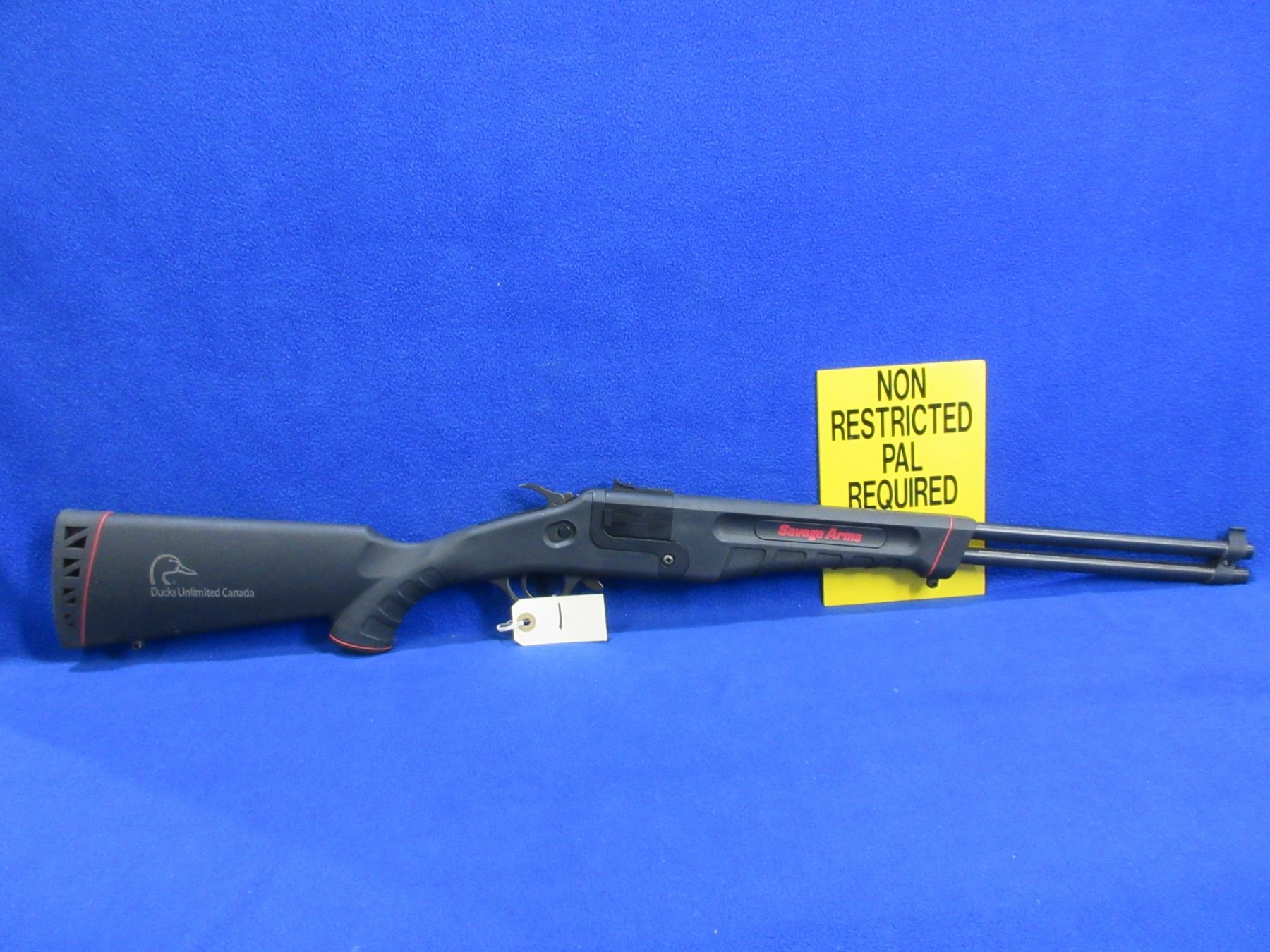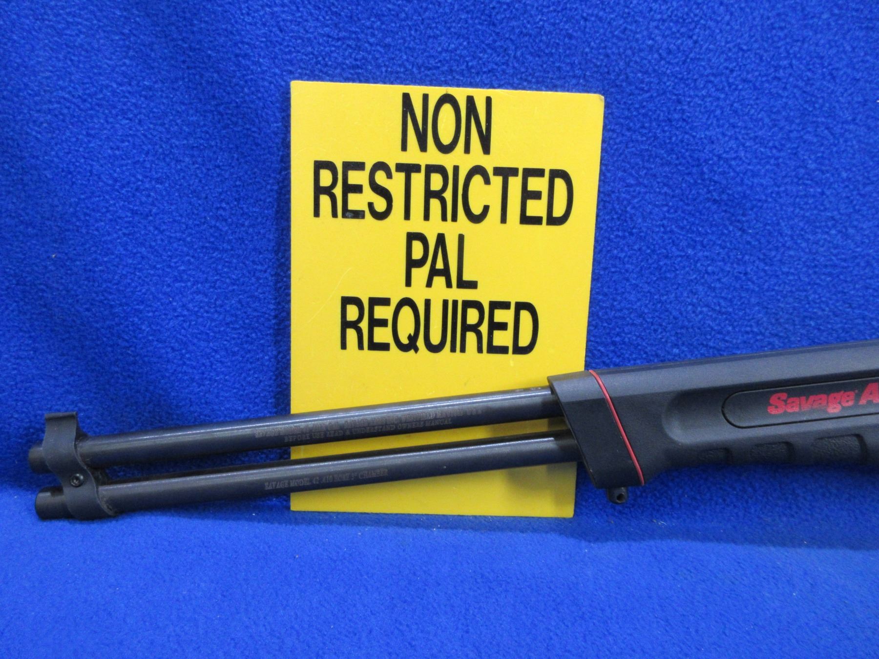 Non-Restricted - Savage Model 42 Combo in 410 Ga 3"/22 LR - This is a tip up combo hammer shotgun/rifle, action is tight and appears to be in good to very good working order. 12 Ga. barrel is 20" - bore is good to very good, rifle barrel is 20" - rifling is good to very good, bluing is good to very good, length of pull is 13 1/2", has both sights, synthetic stock is good to very good with minor usage marks, synthetic forearm is good to very good, rubber recoil pad good, comes with swivel studs. Ser # J471310