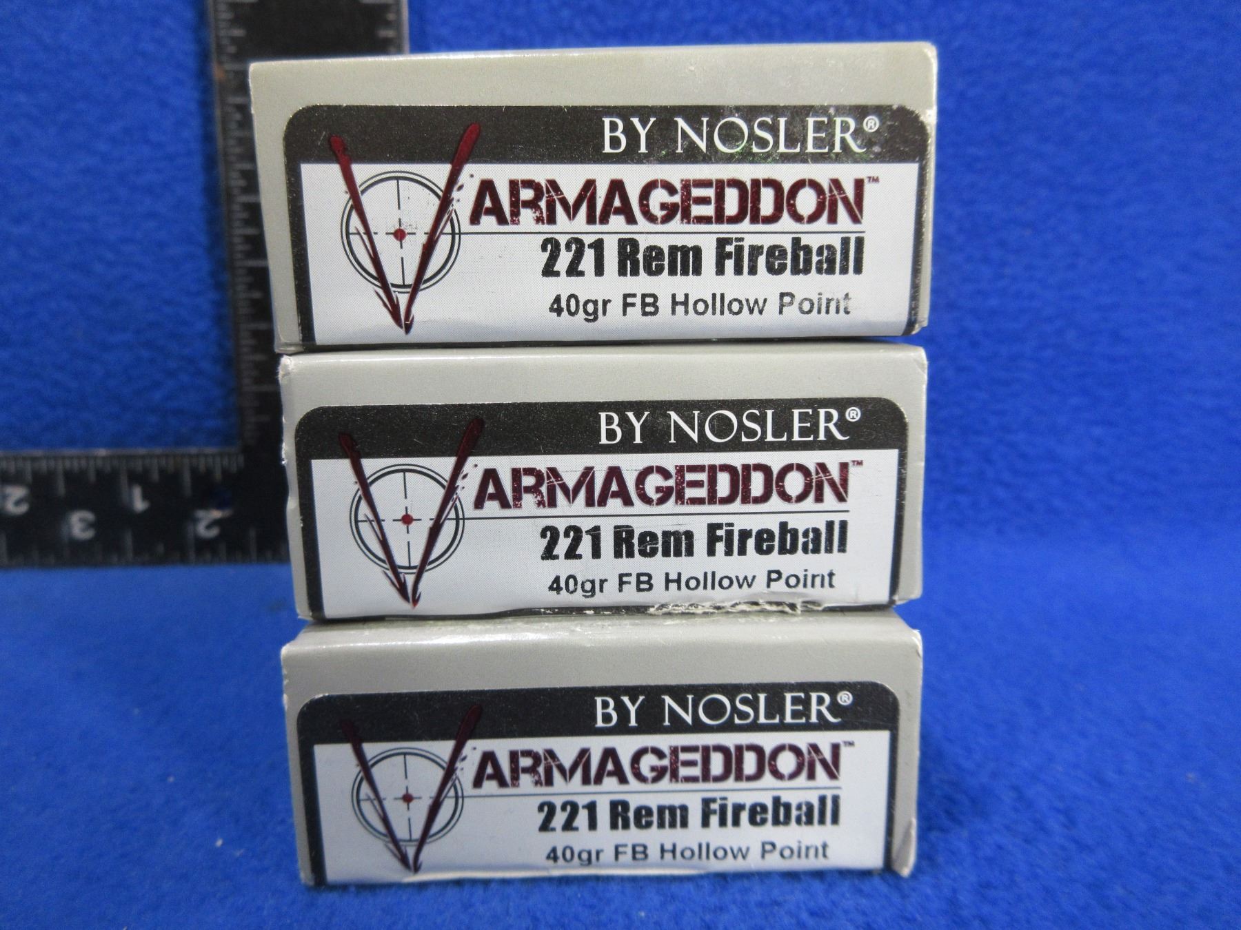 221 Rem. Fireball 40gr FB HP Nosler (Pick Up or Ship by UPS Only) Cartridges - 3 Boxes of 20