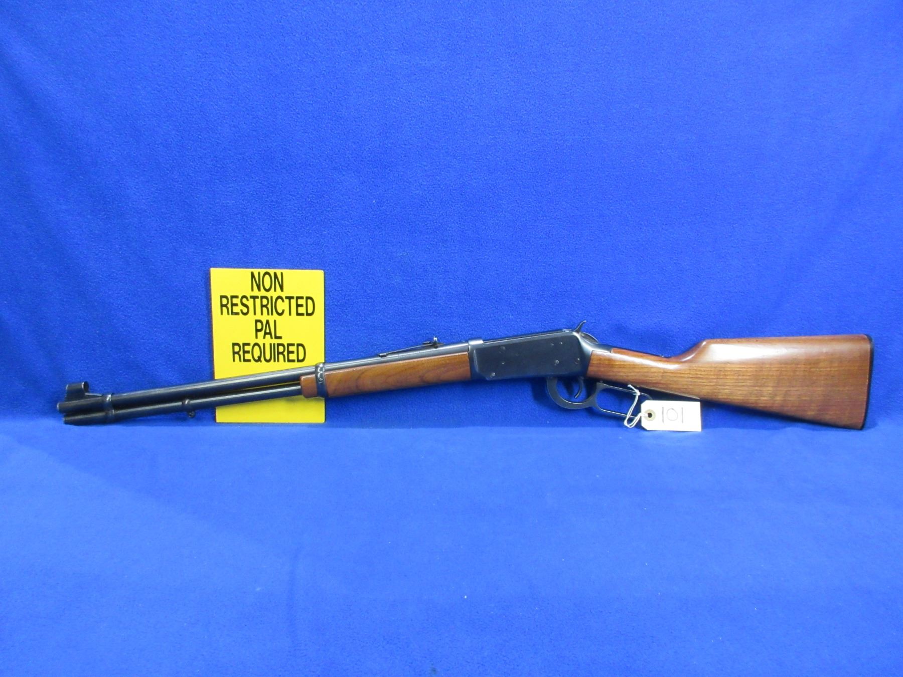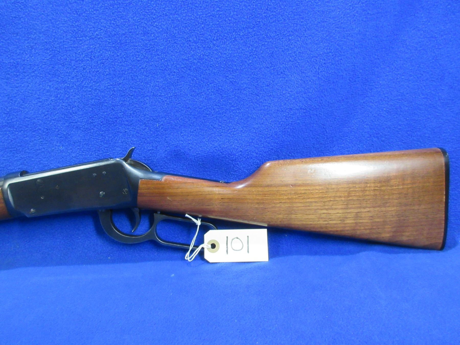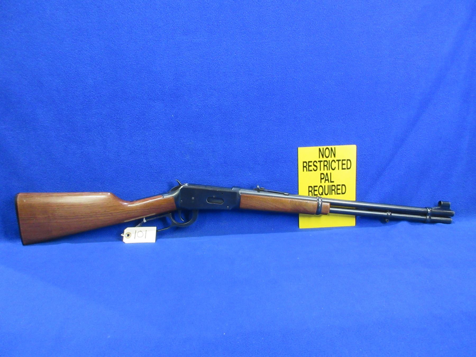 Non-Restricted - Model in - This is a lever action rifle with tube magazine, action appears to be in good to very good working order. Barrel is 20", rifling is good to very good, bluing is good, has both sights, stock and forearm are good to very good with usage marks, length of pull is 13 1/2", butt plate good, comes with front swivel. Ser # 4947407