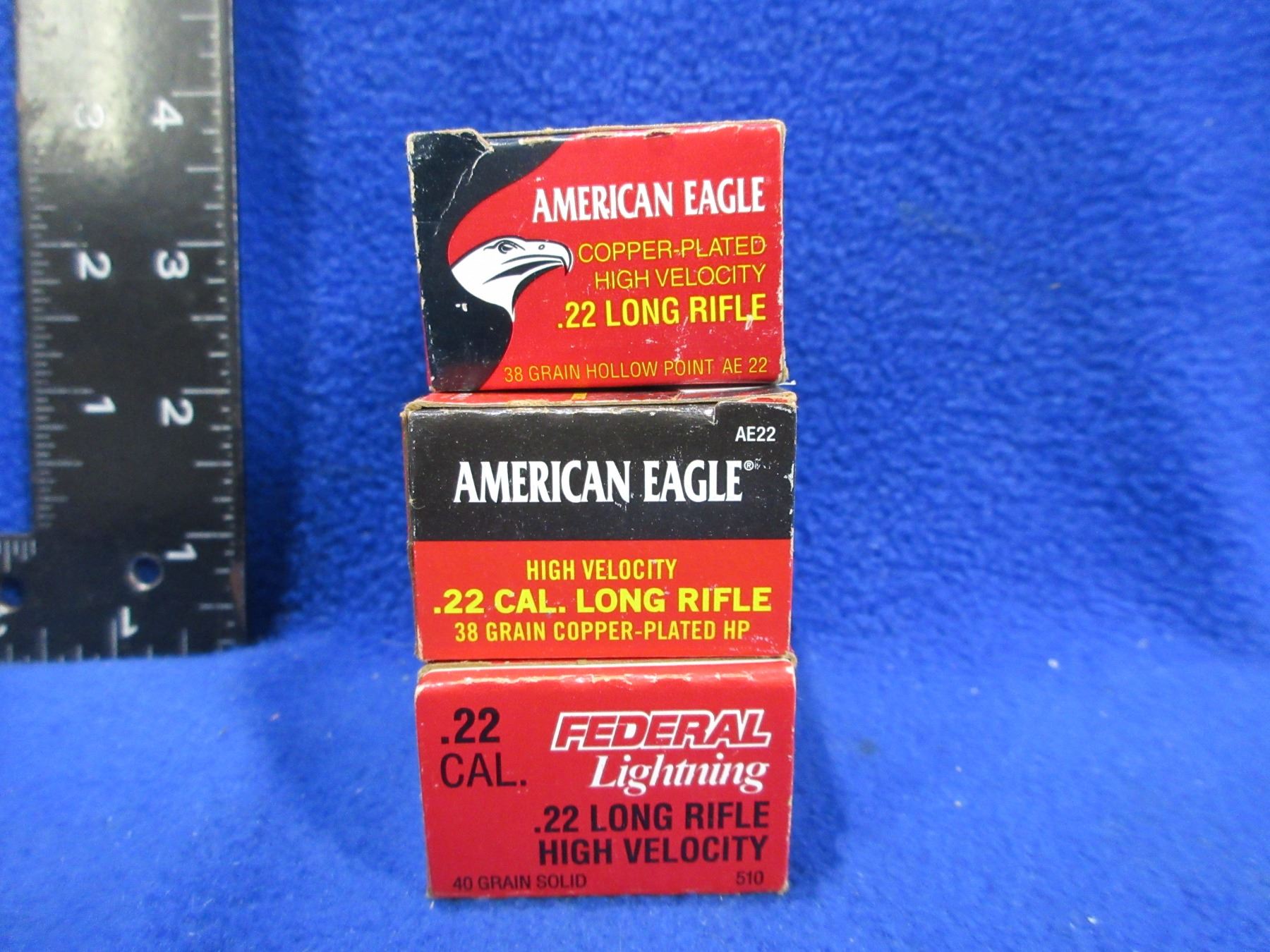 22 LR HV Federal American Eagle (Pick Up or Ship by UPS Only) Cartridges - 2 Boxes of 50 (38gr HP), Box of 50 (Mixed Solid Point)