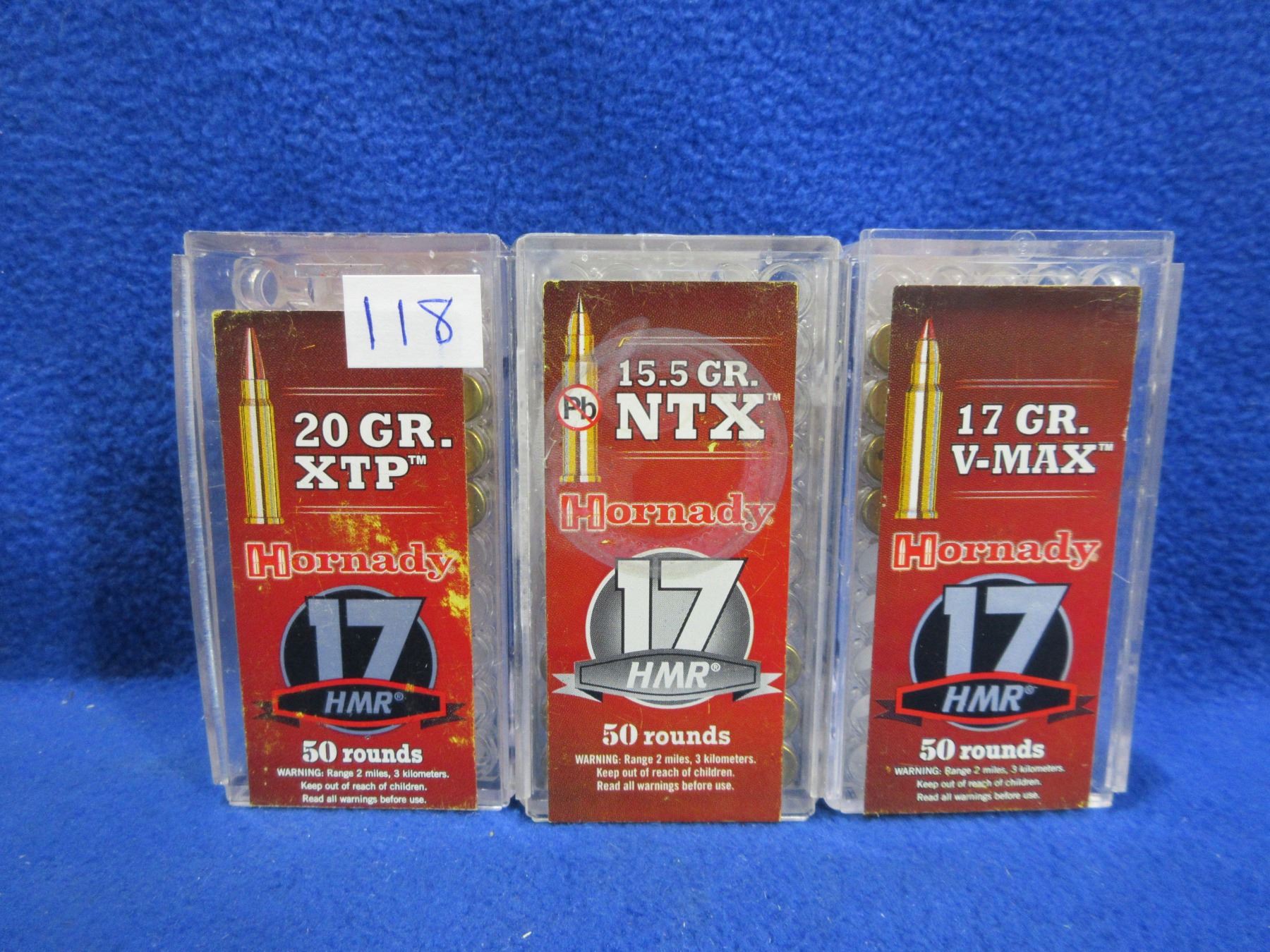 Lot 118 17 HMR Hornady Cartridges (Pick Up or Ship by UPS Only)