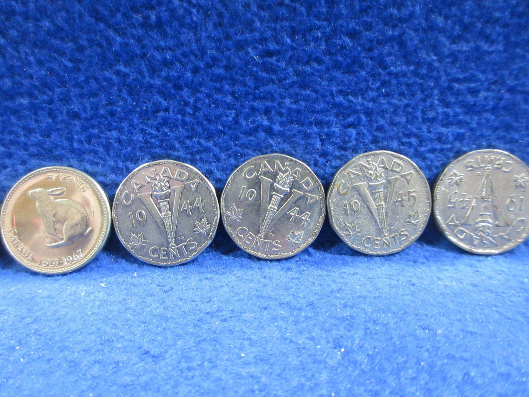 Lot 124 12 Canadian Nickels - 4 Victory Nickels (1944, 45) & 8 Confederation Nickels