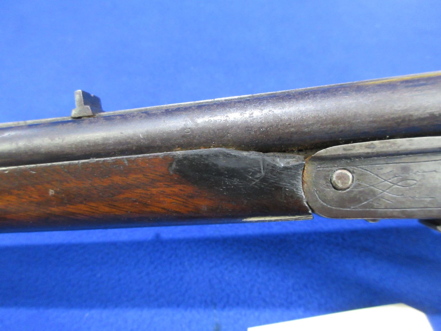 Non-Restricted - Leige Game Keeper Cape Gun in 9mm Flobert/22 Short - This is a tip up SXS combo saddle ring shotgun/rifle, action is tight and appears to be in good working order. Smooth bore barrel is 22 1/2" - bore is good, rifle barrel is 22 1/2" - rifling is good to very good, bluing is is turning grey or gone with pitting, length of pull is 13 1/2", has both sights, stock has a crack on the left side by the upper tang, forearm has a small chip on the left at the back, metal butt plate, comes with rear swivel, front swivel missing. Ser # None