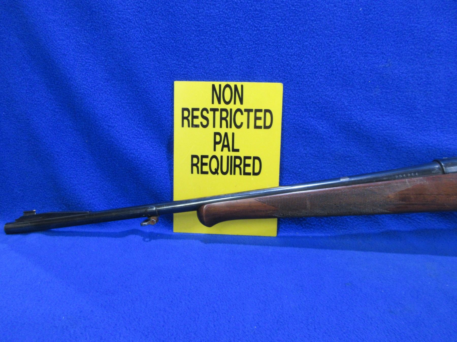 Non-Restricted - Husqvarna Model 1640 in 30-06 (7.62x63) - This is a bolt action rifle with floorplate magazine, action appears to be in good to very good working order. Barrel is 21", rifling is good to very good, bluing is good, has front sight, rear sight missing but is drilled and tapped, stock has two hairline cracks behind the top tang, length of pull is 14", comes with swivels. Ser # 204264