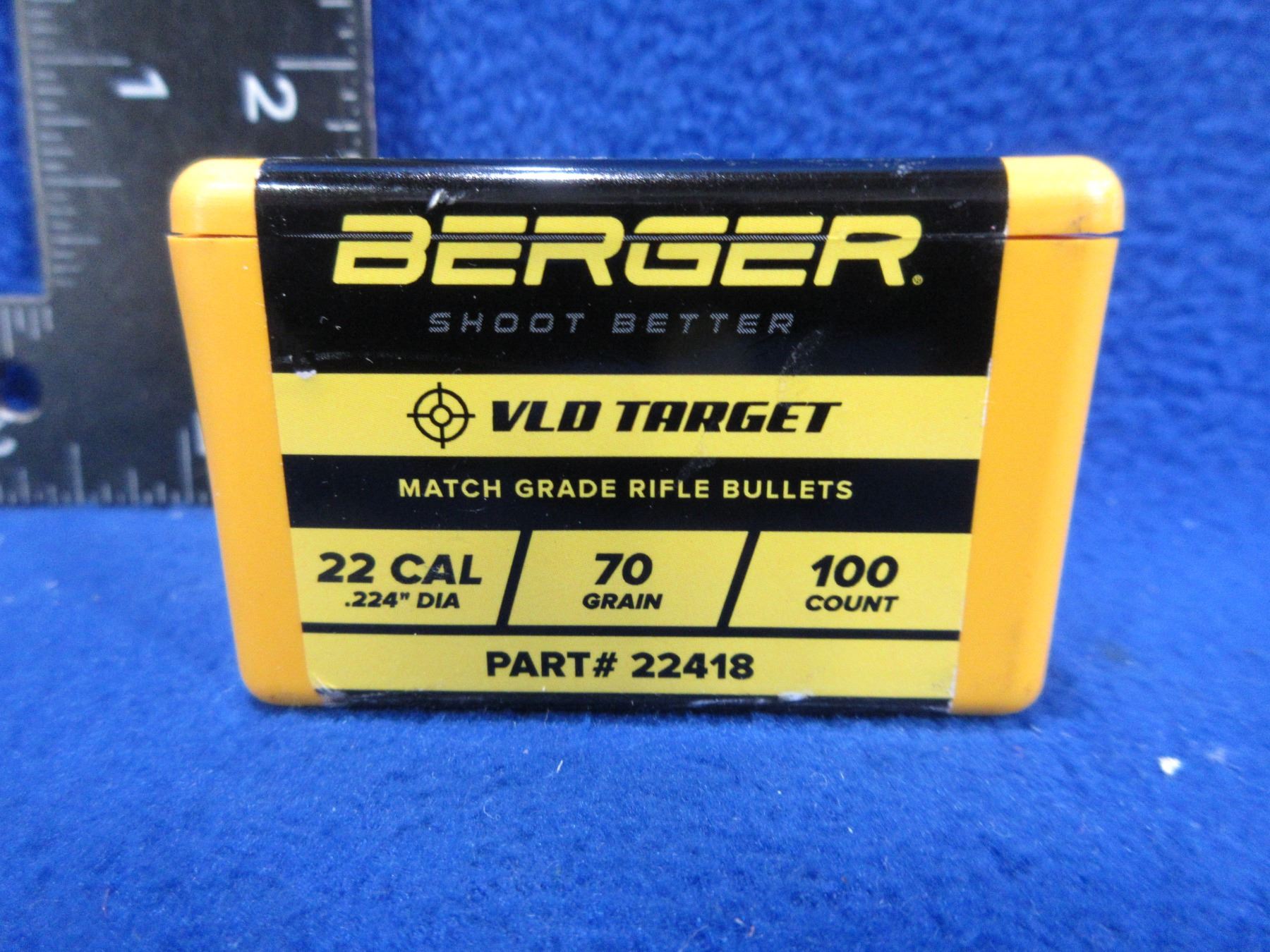 Lot 239 22 Cal. .224" 70gr VLD Target Berger Bullets - Sealed Box of 100