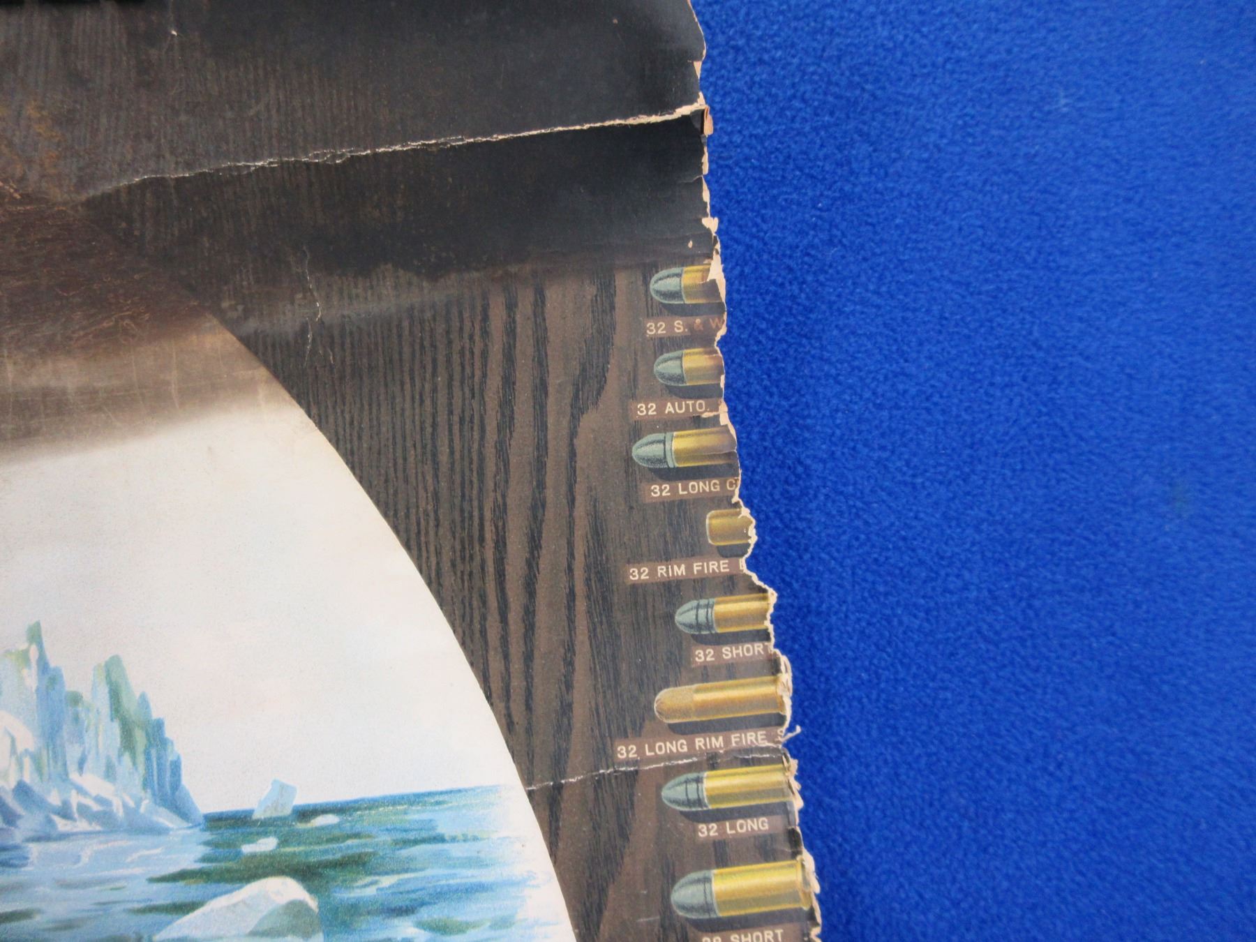 Vintage Rare 1912 Polar Bear Poster of Dominion Cartridges - Damage to Outer Edges but Suitable for Framing - 18 1/2" x 26"