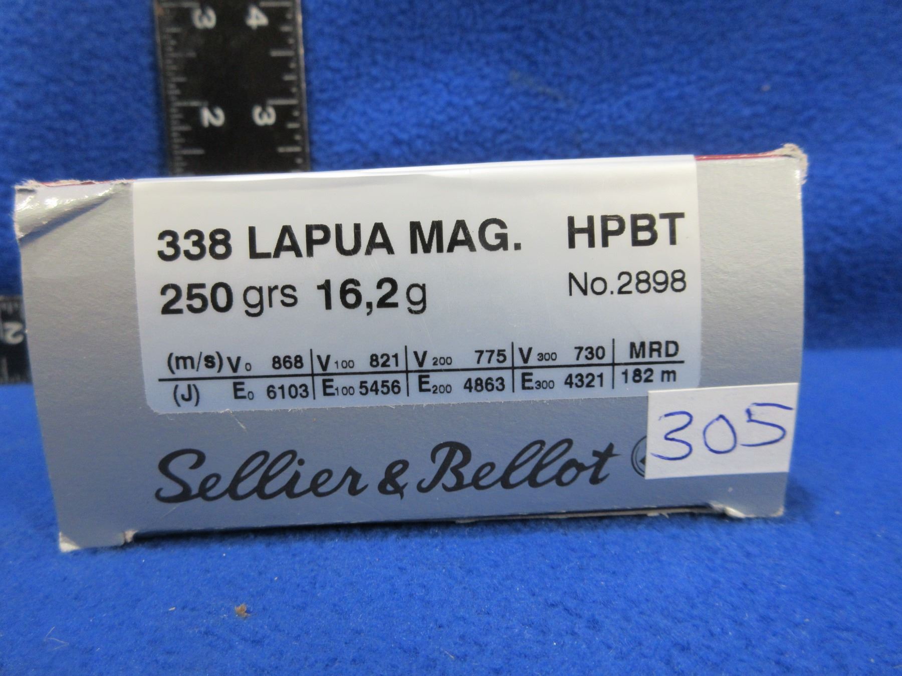 Lot 305 338 Lapua Mag 250gr HPBT Sellier & Bellot (Pick Up or Ship by UPS Only)