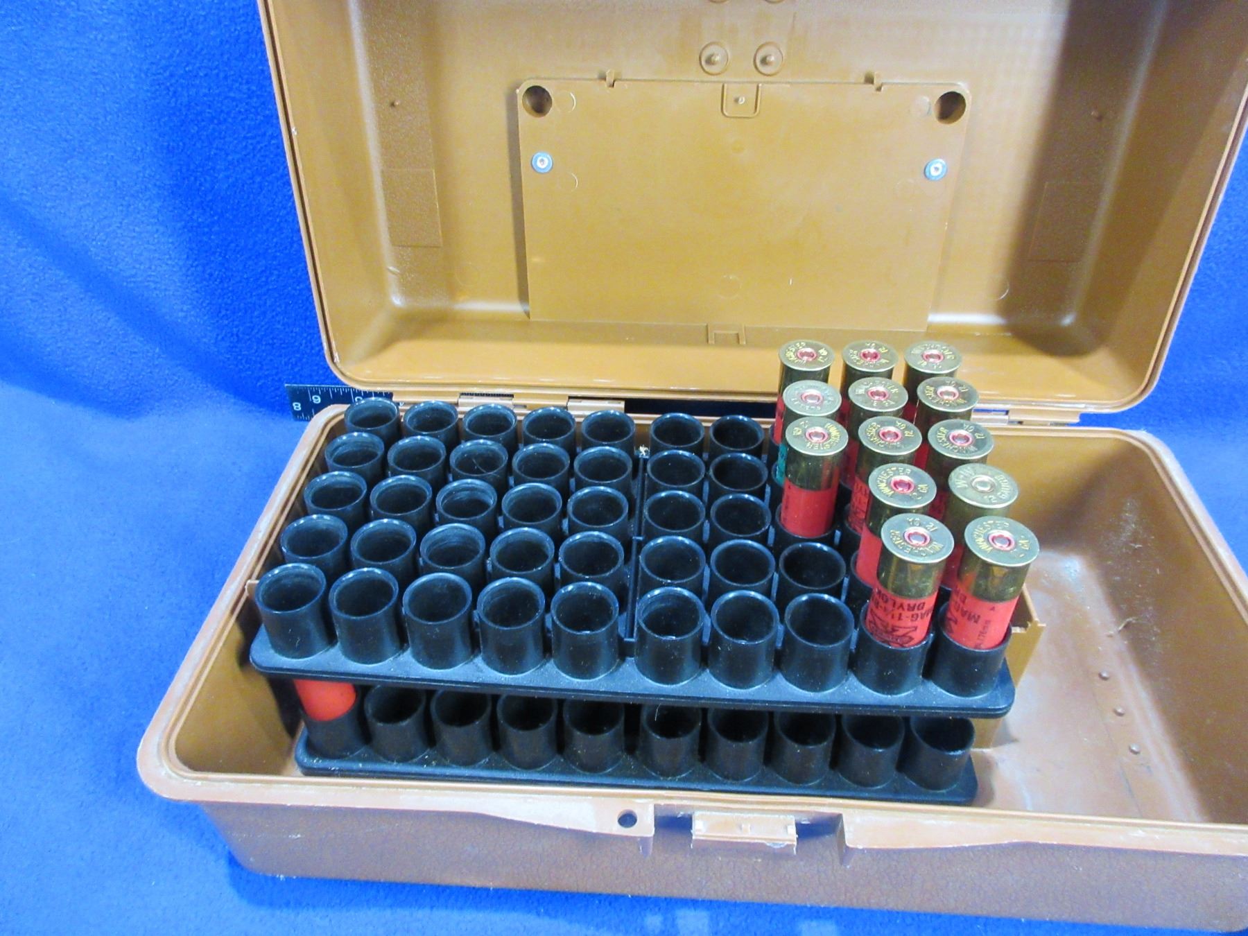 12 Ga. 2 3/4" & 3" Mixed Shotshells (Pick Up or Ship by UPS Only) - 26 Total (13 x 3", 13 x 2 3/4") in Woodstream Box (Handle Missing)