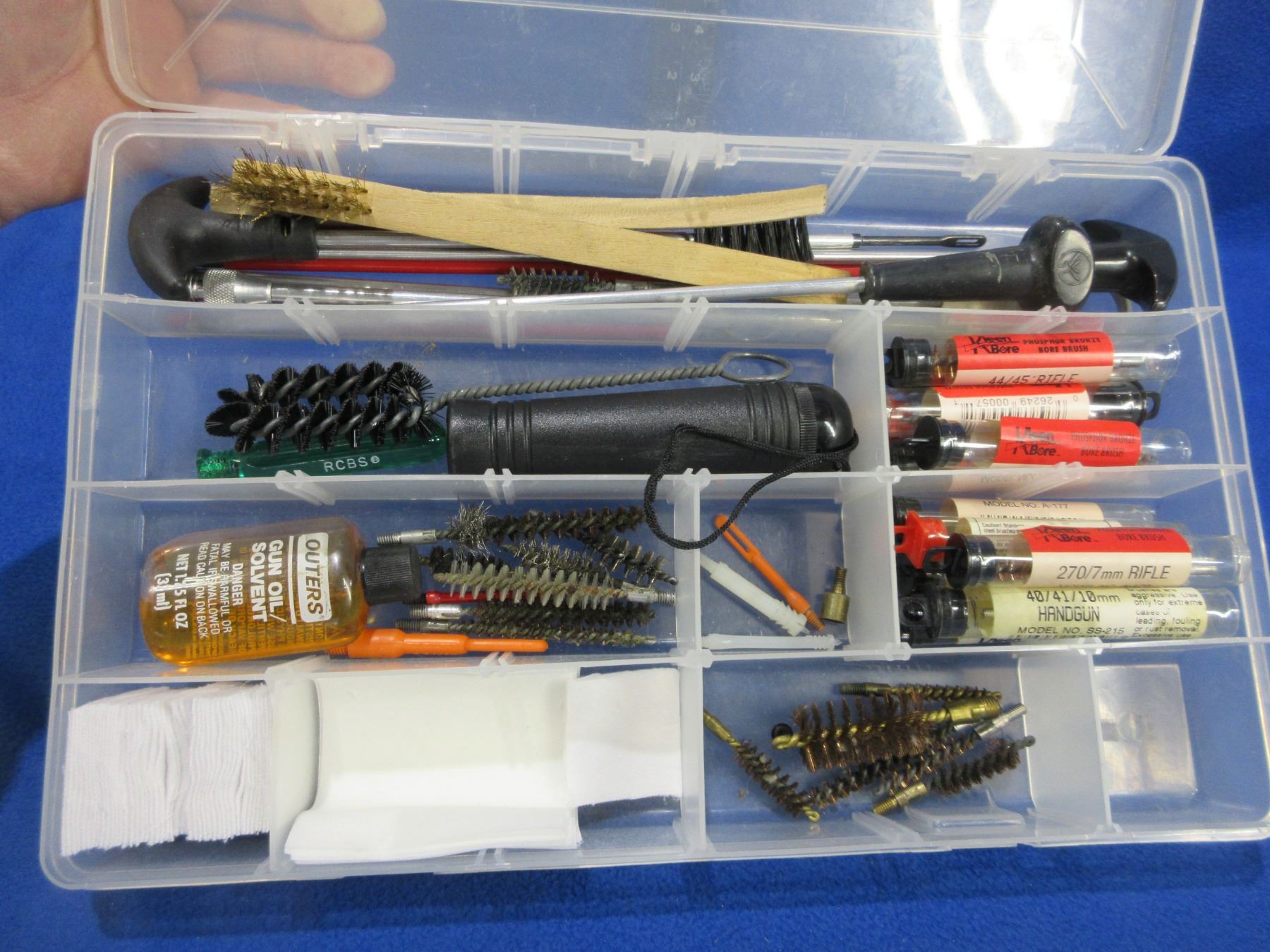 Lot of Misc. Gun Cleaning Supplies in Plano Compartment Case - Cleaning Rods, Brushes, Patches, Etc.