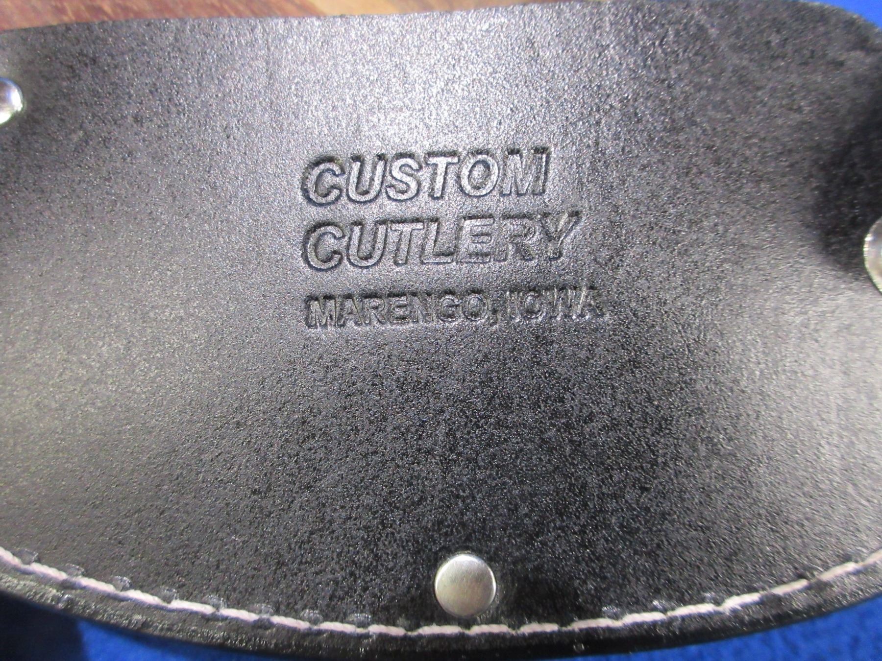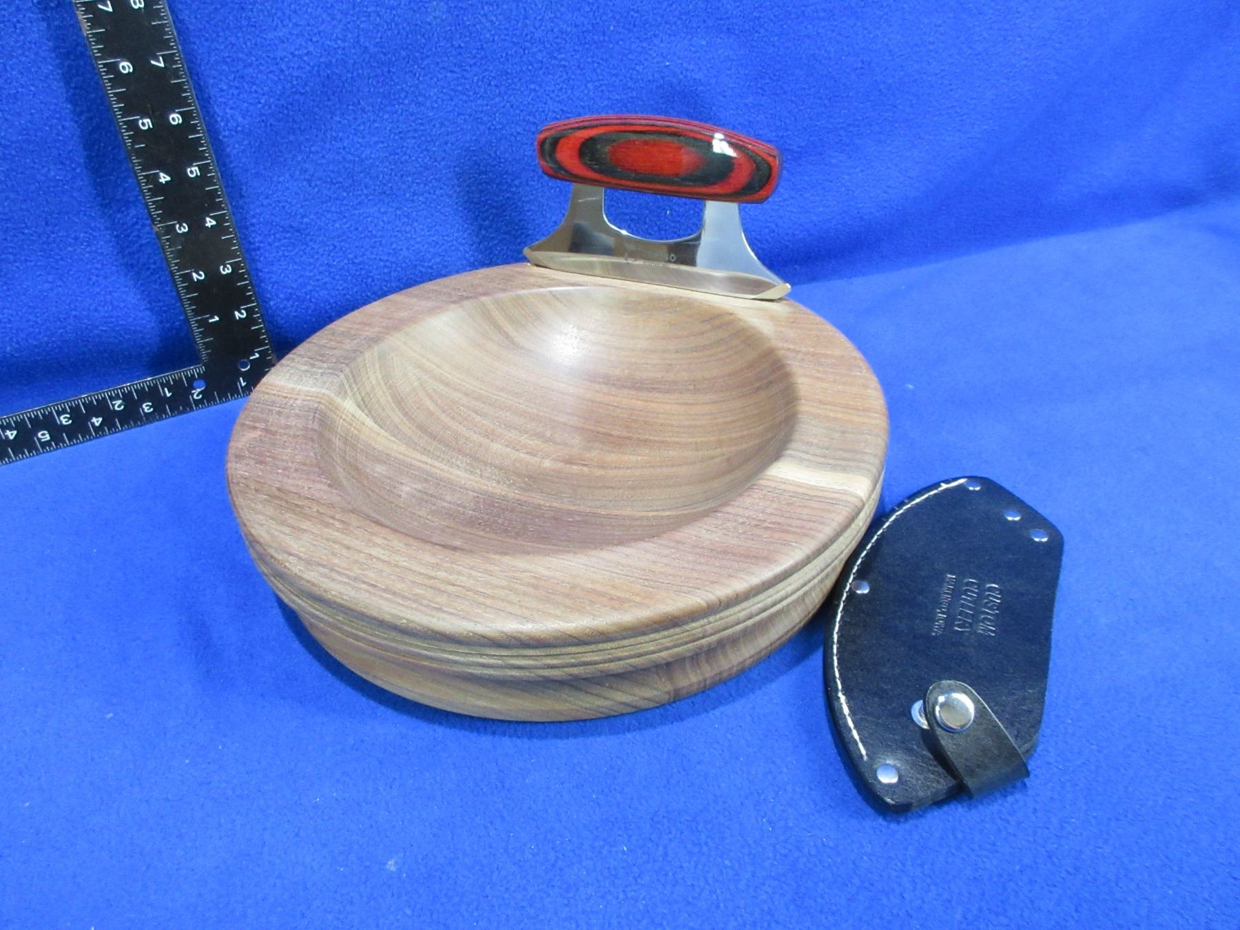 Lot 367 Custom Cutlery Ulu Knife with Sheath and Wood Chopping Bowl