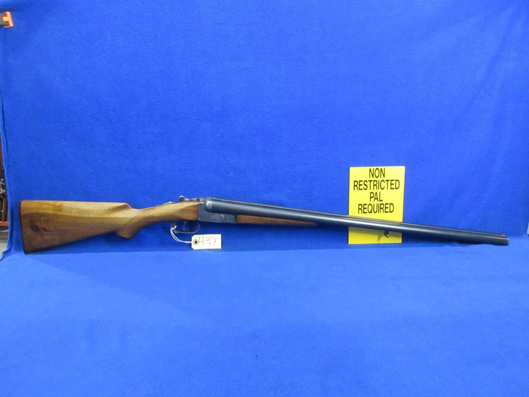 Non-Restricted - Vapen-Depoten Falun in 12 Ga. 2 3/4" - Made in Spain, this is a tip up SXS shotgun, action is tight and appears to be in good working order. Barrels are 27 1/2", bores are good but left barrel has two small dents approx 5" and 9" from muzzle, bluing is good with some light scrathes, has bead front sight, stock is good with usage marks, forearm is good with usage marks, length of pull is 14 3/4", butt plate good, comes with front swivel, rear swivel stud missing. Ser # 122676