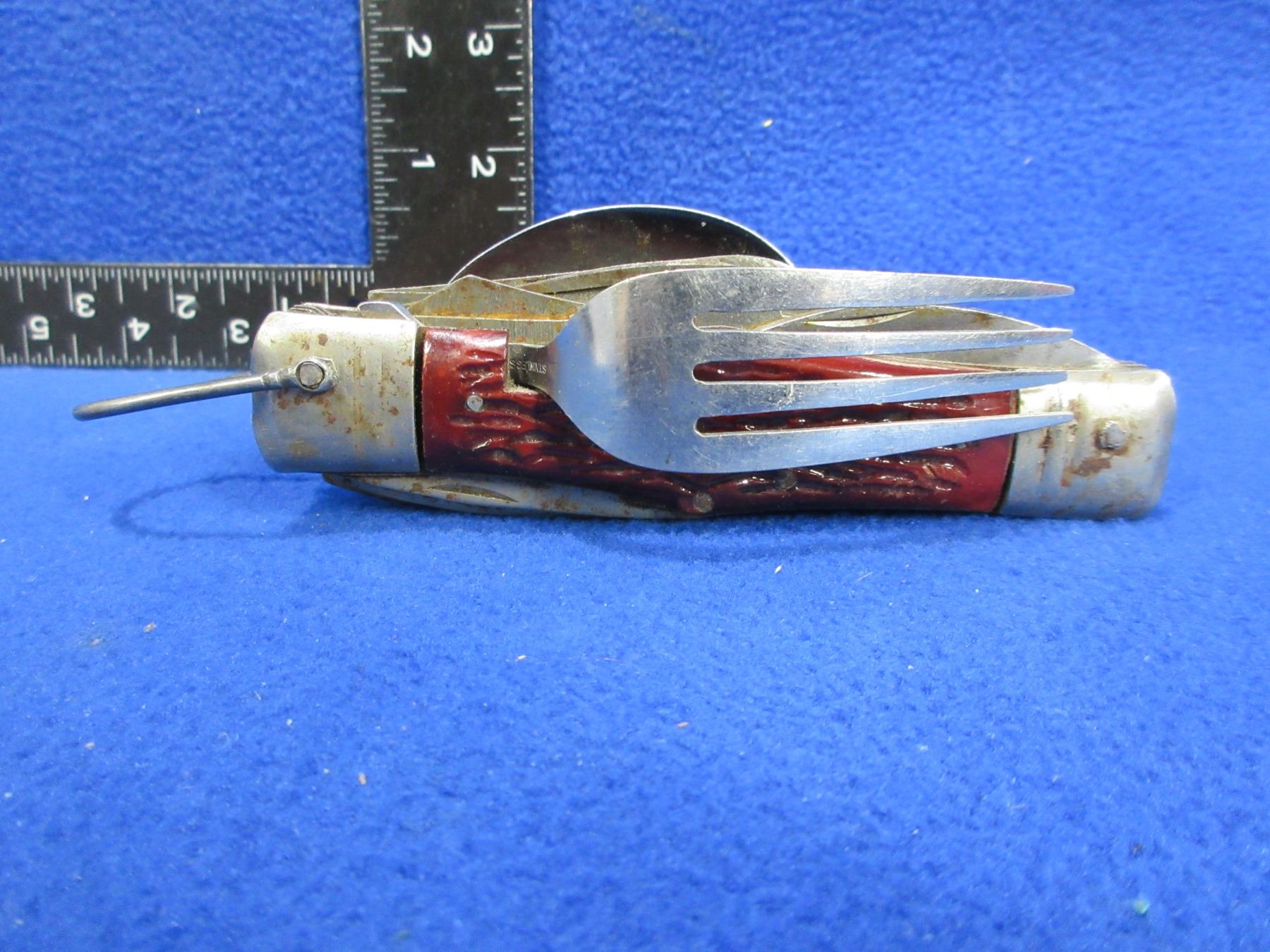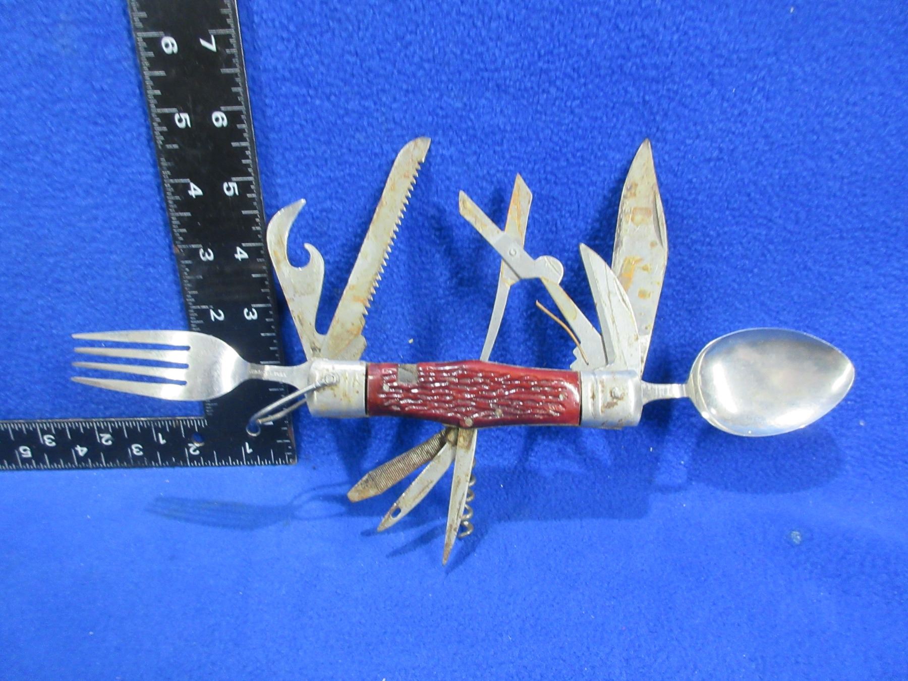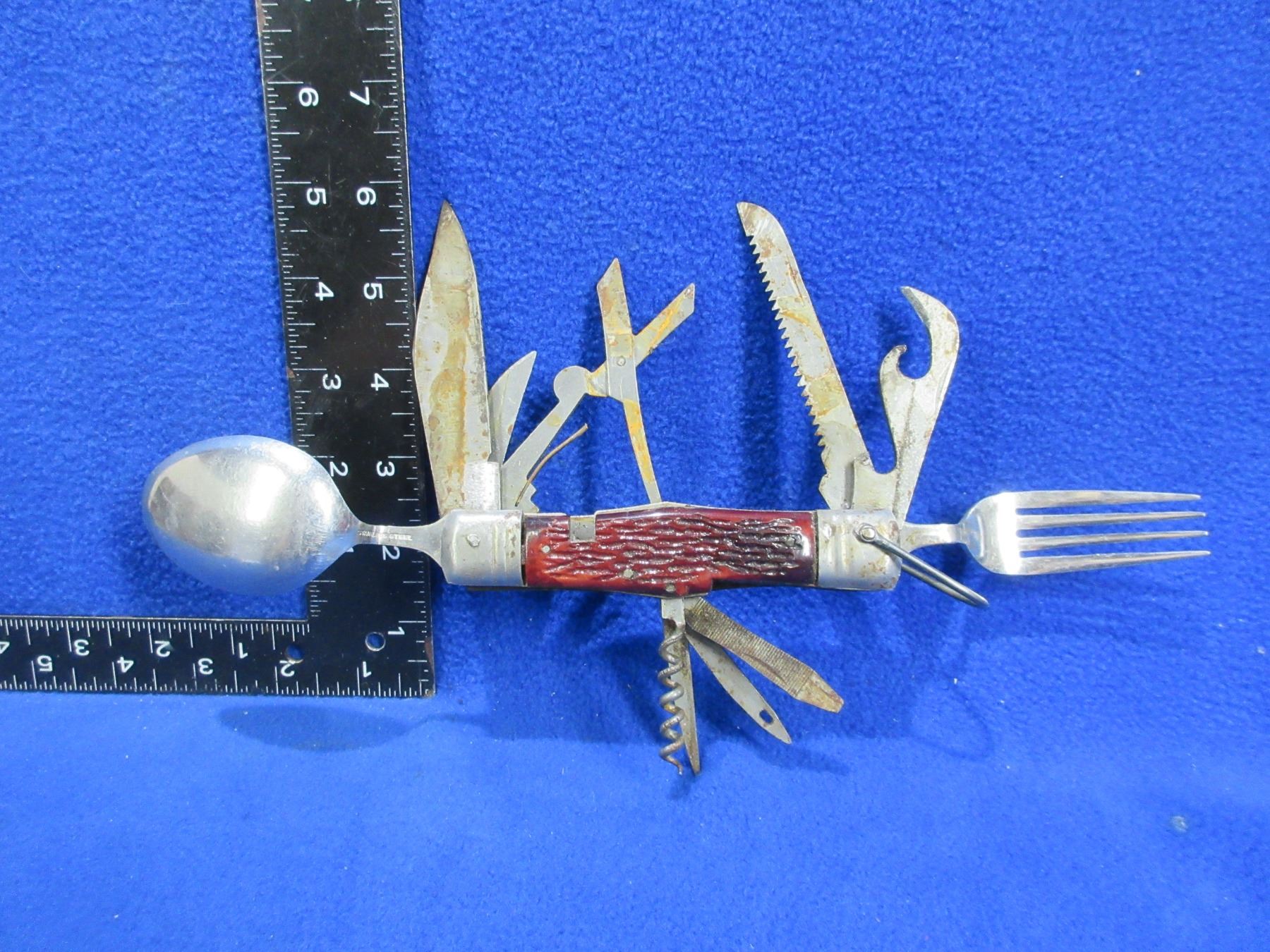 Lot 477 Vintage 11 Utensil Camping Utility Survival Knife - Has some rust
